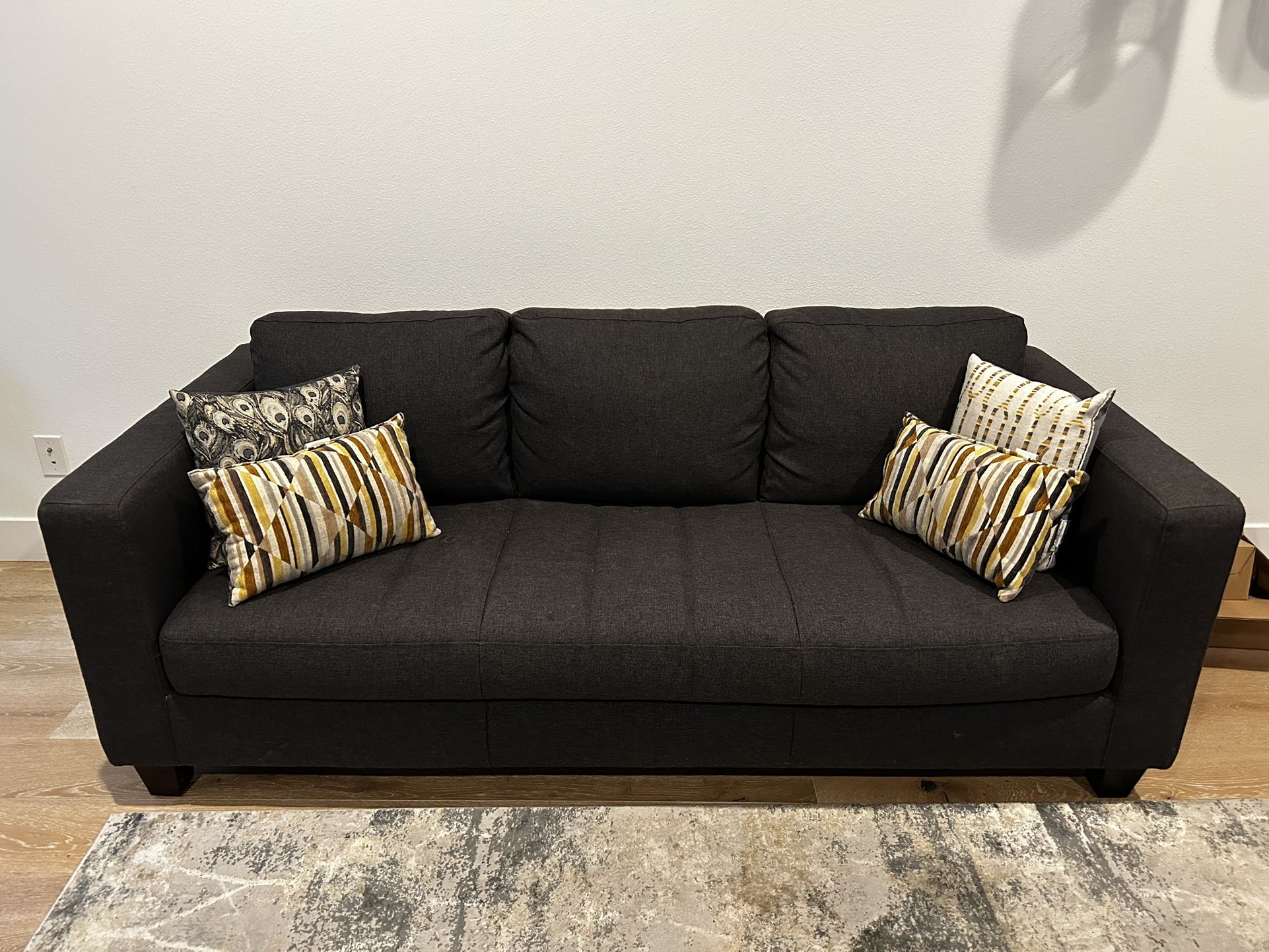 Selling a Kasala Pacifica 3-seater sofa, known for its high-quality craftsmanship and timeless modern design. This sofa has been well cared for and is in great condition. Details: Brand: Kasala Model: Pacifica Seating: 3-seater Color: Dark blue upholstery Legs: Dark brown stained wood Dimensions: 85" W x 40" D x 34.5" H Clean, pet-free and smoke-free home Perfect for a living room, family room, or apartment. Stylish, sturdy, and built to last—much better quality than big-box store sofas. Message me if you’re interested or want to come see it in person!