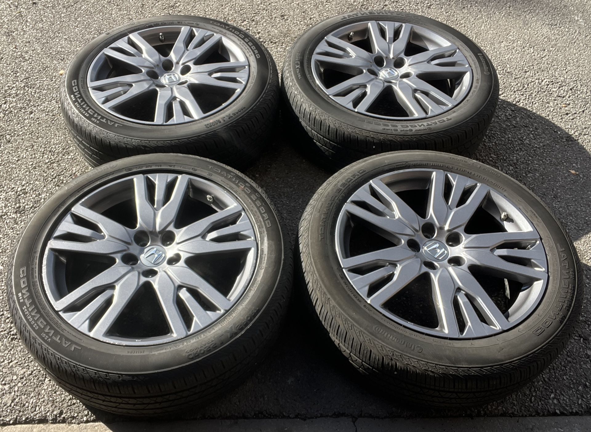 Selling Nice Set of: 20” Honda Pilot Passport MDX Sport Factory OEM Wheels Rims Tires 20 inch Wheels are in great condition. Tire Size/ Brand: 245/50/20 245/50r20 Continental All Season Tires. Tires have approx. 80-85% tread. Joe
