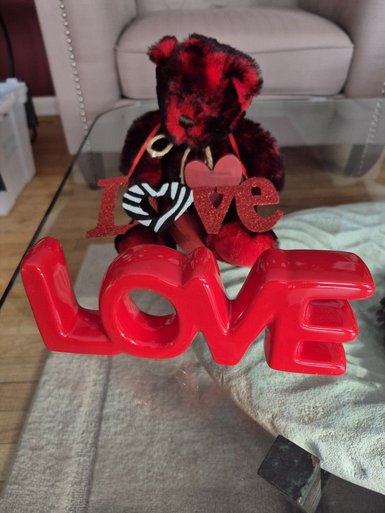 2- love signs..1-glass. Teddy bear..