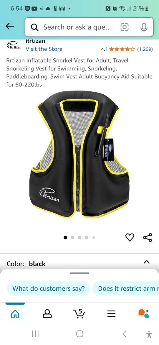 Rrtizan Inflatable Snorkel Vest for Adult, Travel Snorkeling Vest for Swimming, Snorkeling, Paddleboarding, Swim Vest Adult Buoyancy Aid Suitable for 60-220lbs #F251