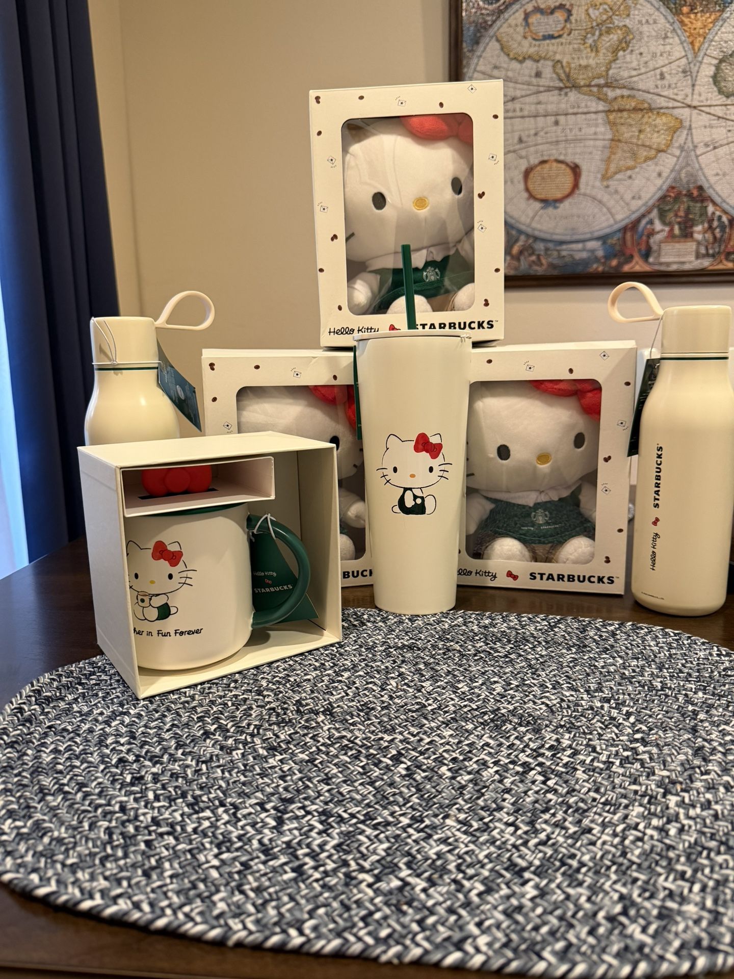 Hello kitty x Starbucks collab bundle $450 OBS -hello kitty thermal cups $60 -hello kitty plushies $75 -hello kitty mug $70 -hello kitty cup $50