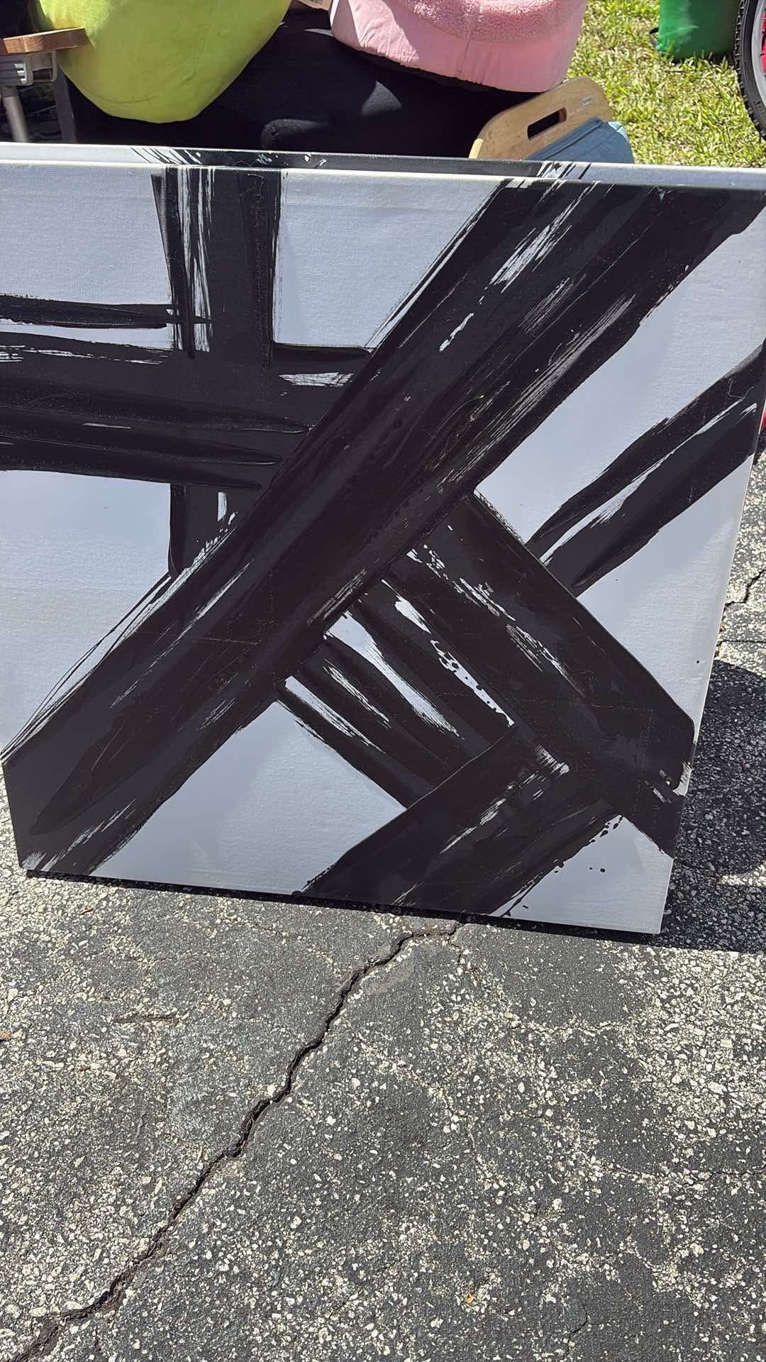Bold, modern abstract canvas featuring expressive black brushstrokes on a light gray background. This piece has a striking, minimalist look that works great in contemporary, industrial, or modern spaces.