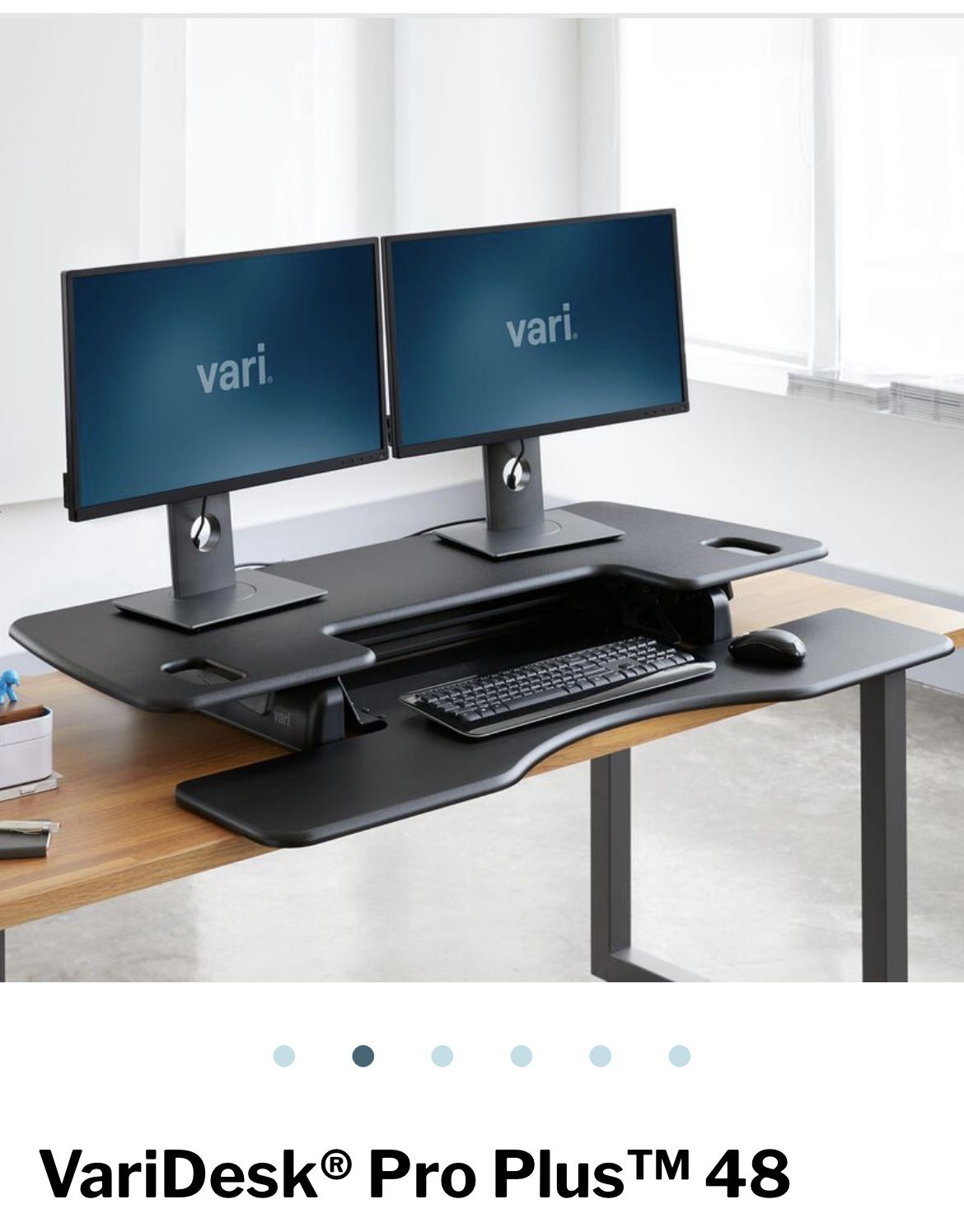 New condition VeriDesk standing desk conversion. Fits two large screens well. Was $425 new