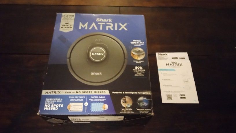 Shark Matrix , Home Cleaning Robot powerful intelligent navigation 50% more suction, carpet or hardwood floor capability. This is an open box unit in perfect working order.