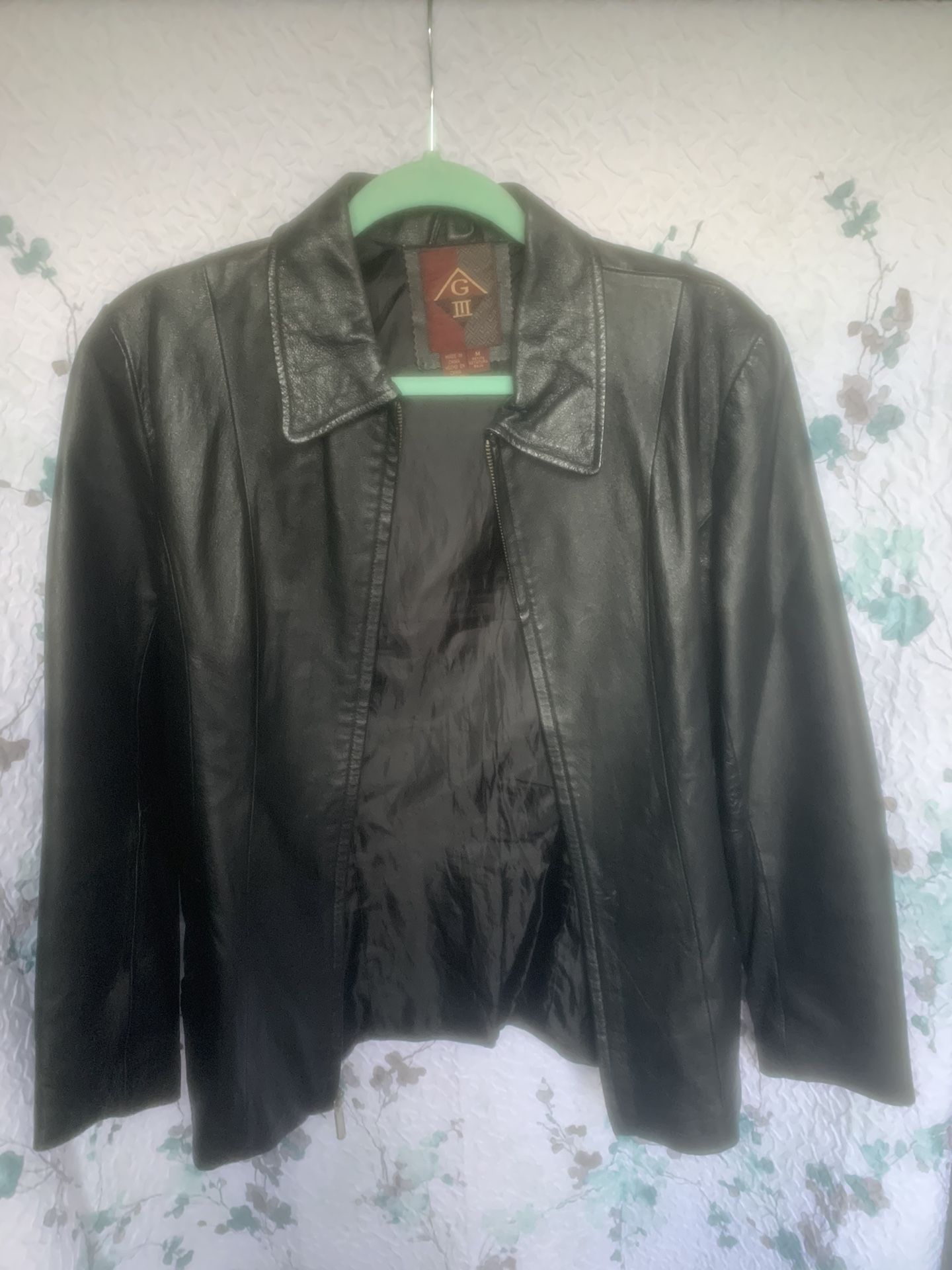 Vintage G-III Black Leather Zip Up Jacket Women's Medium very classy