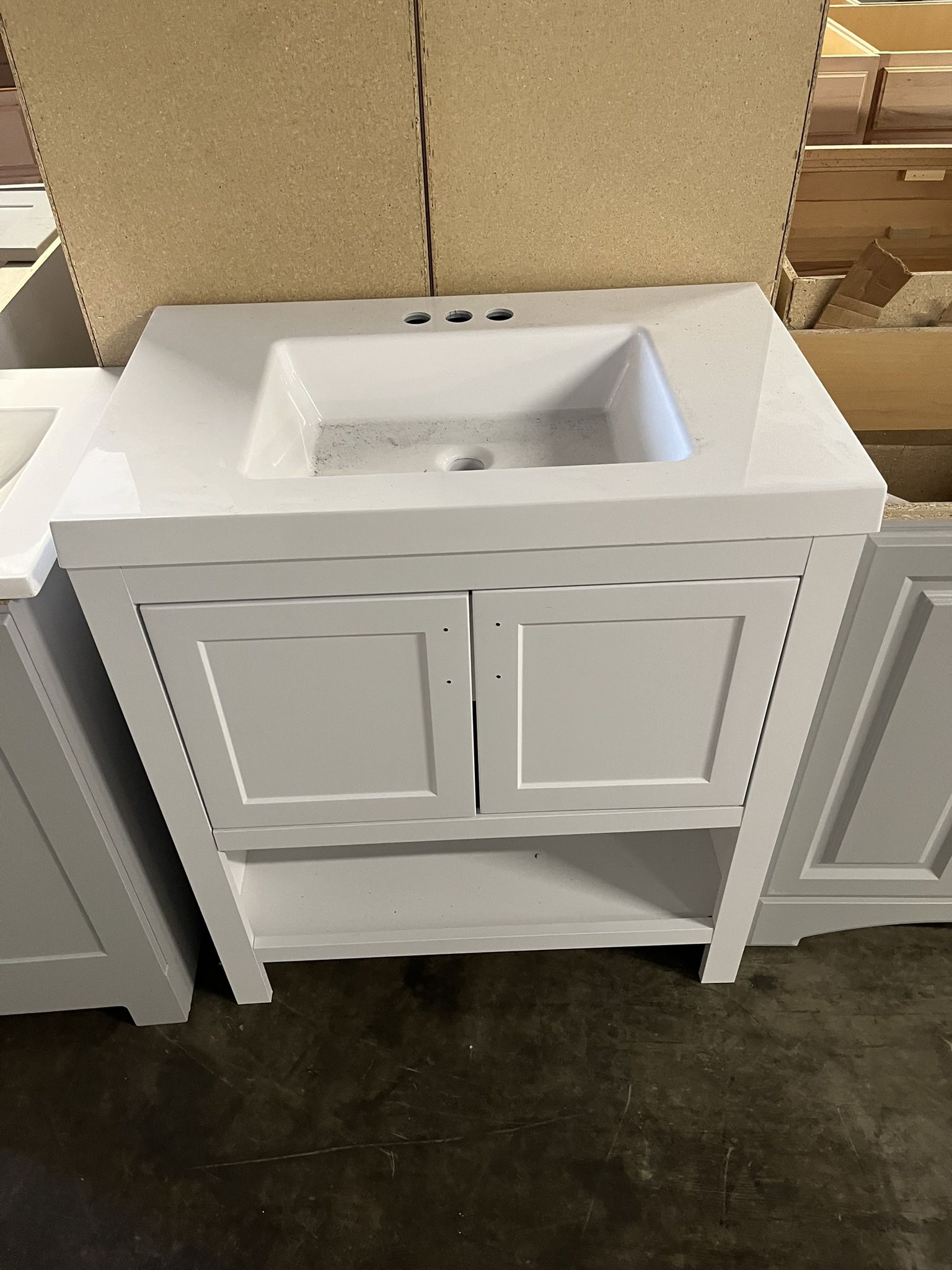 White Bathroom Vanity w Sink 3 Faucet Holes