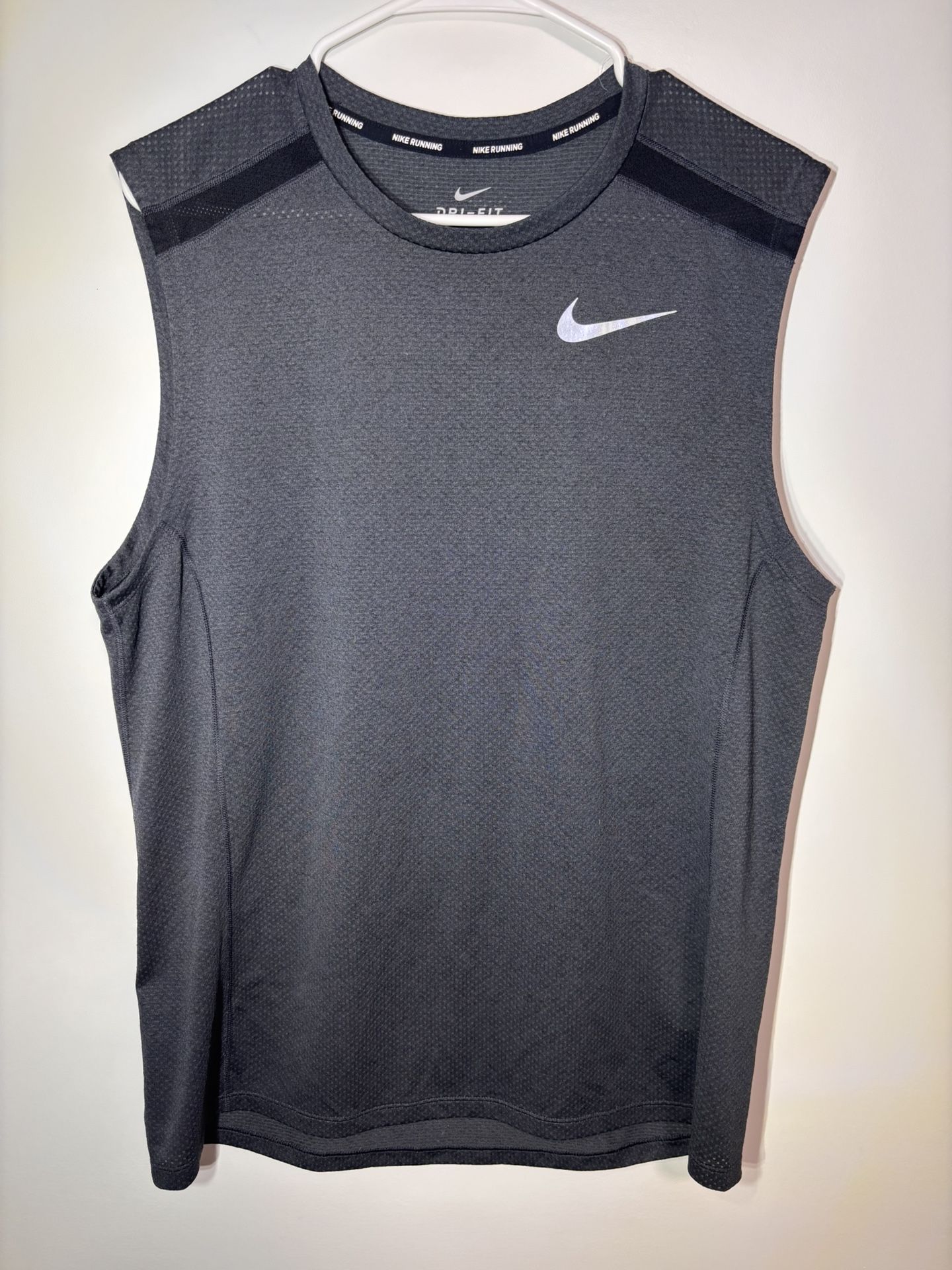 Nike Tank Top Men Large Gray Dri Fit Miler Running Sleeveless Reflective Swoosh