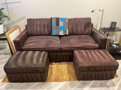 Sleeper sofa with two matching ottomans - in Great condition as minimally used. . No visible or functional wear and tear.