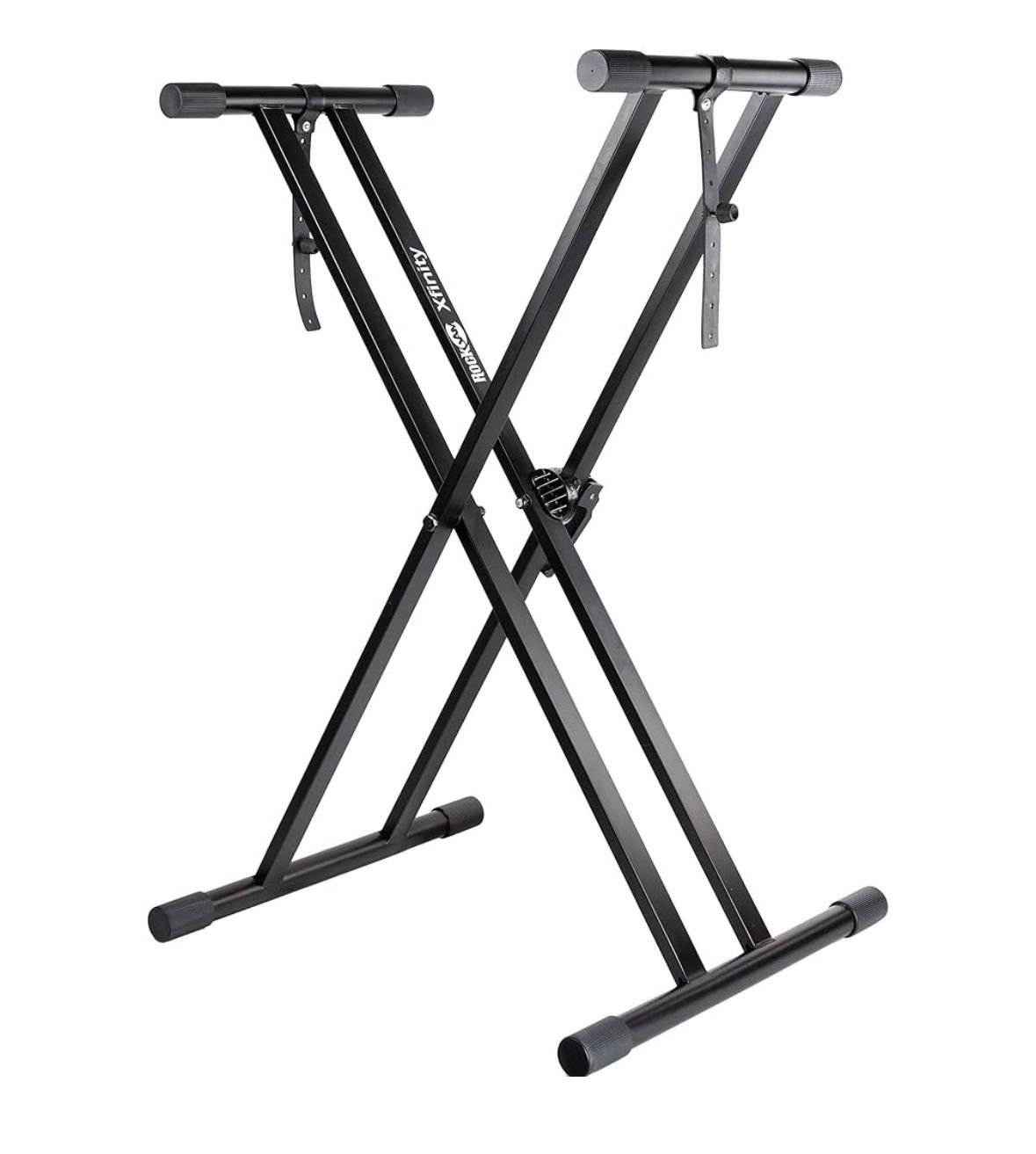 RockJam Xfinity Heavy-Duty, Double-X, Pre-Assembled, Infinitely Adjustable Piano Keyboard Stand with Locking Straps, Black