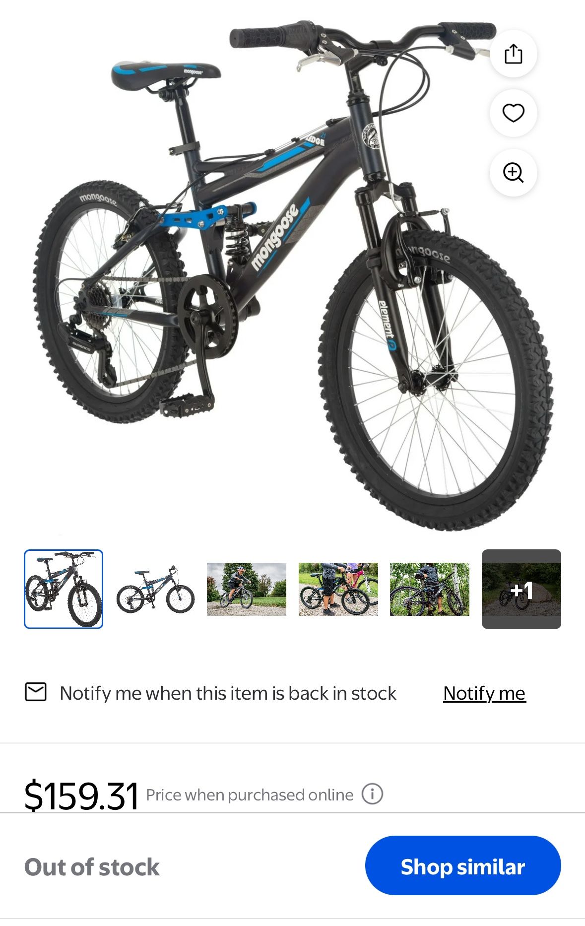 Mongoose Ledge 2.1 Mountain Bike, 20-inch wheels.