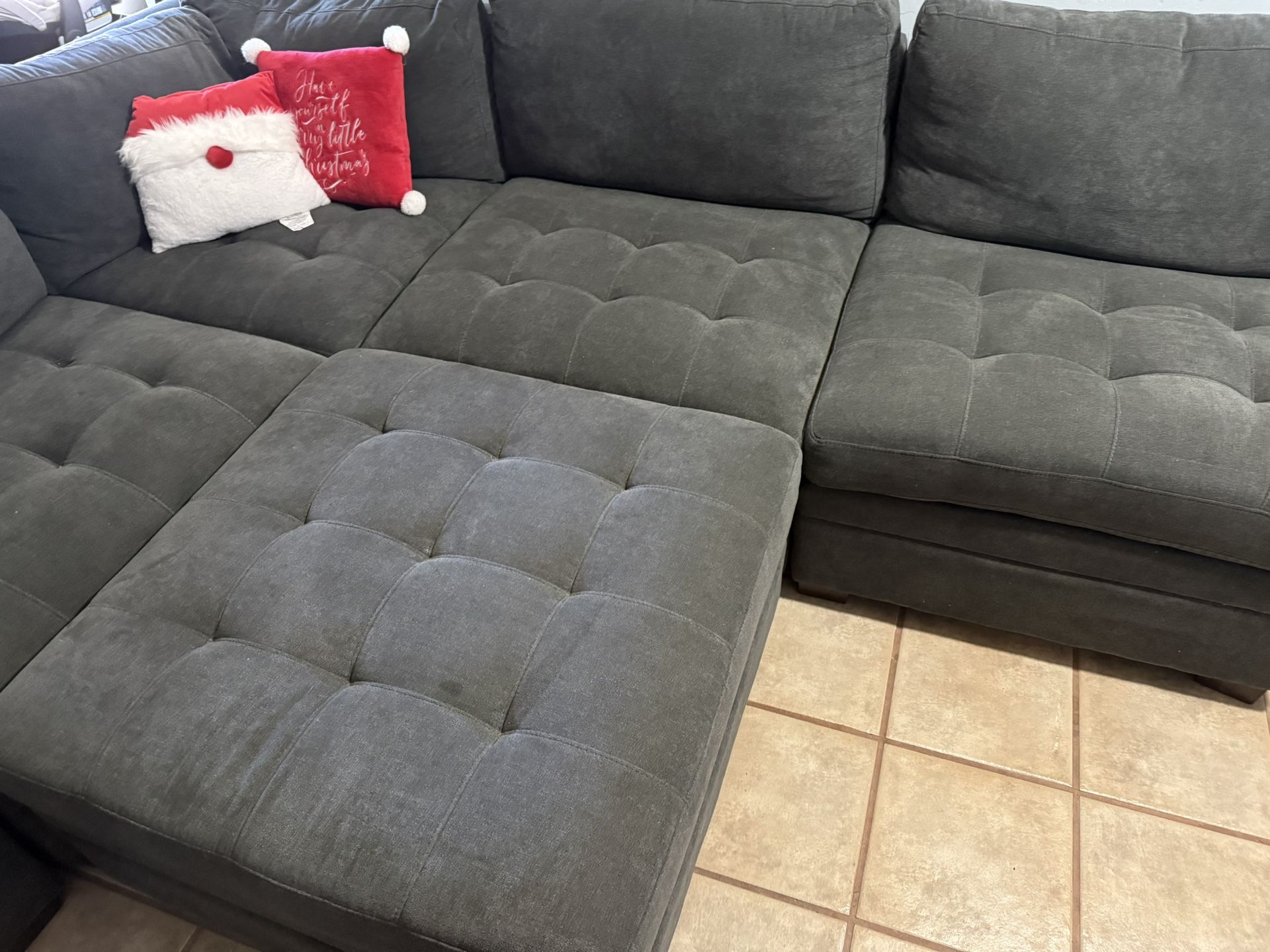 For Sale: Modern 6-Piece Sectional with Storage Ottoman – Excellent Condition! We’re selling our cozy 6-piece sectional sofa, which includes a super handy storage ottoman. We purchased it last year for $1,800, and it’s still in great shape with minimal wear. The ottoman is perfect for stashing away games, blankets, or anything else you like. Still in great condition, we just don’t want a cloth couch anymore. Details: • Color: Dark gray, modern tufted design • Includes a large storage ottoman and cushion covers can be removed to wash! • Gently used, from a smoke-free home • Perfect for family rooms or entertaining spaces Priced at $1,000 OBO. Located in Tucson, and I’m happy to coordinate pick-up details with you. We are able to help load it! Feel free to message me if you have any questions!