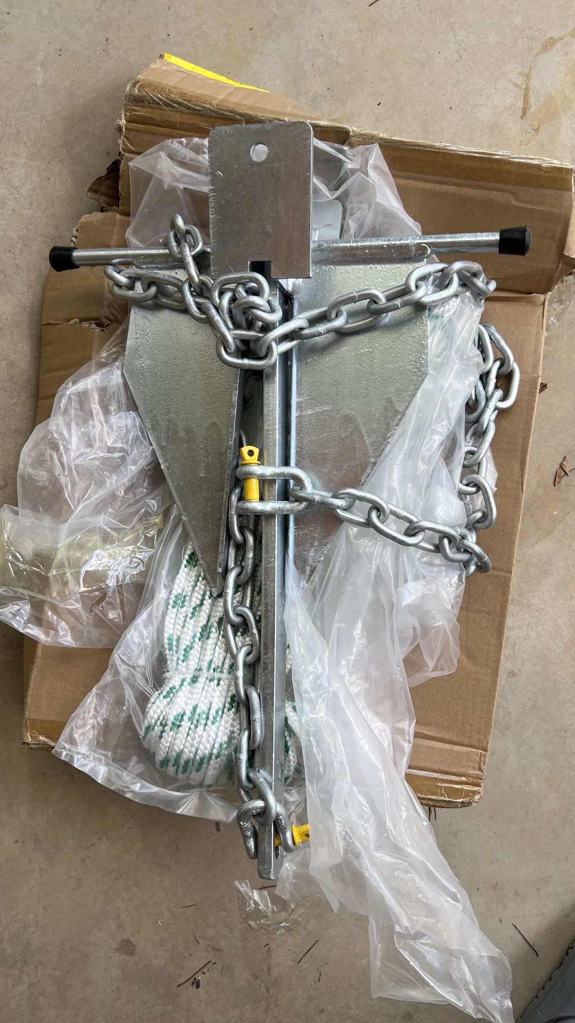 Kit!! New!! π£ 10 LB Hot Dipped Galvanized Fluke Anchor. π£ 3/8" x 100' Nylon Rope with marine grade Stainless Steel thimble. π£ 6.5 Feet of 5/16" chain - Hot Dipped Galvanized. π£ 2 PCS 5/16" Shackles - Hot Dipped Galvanized.