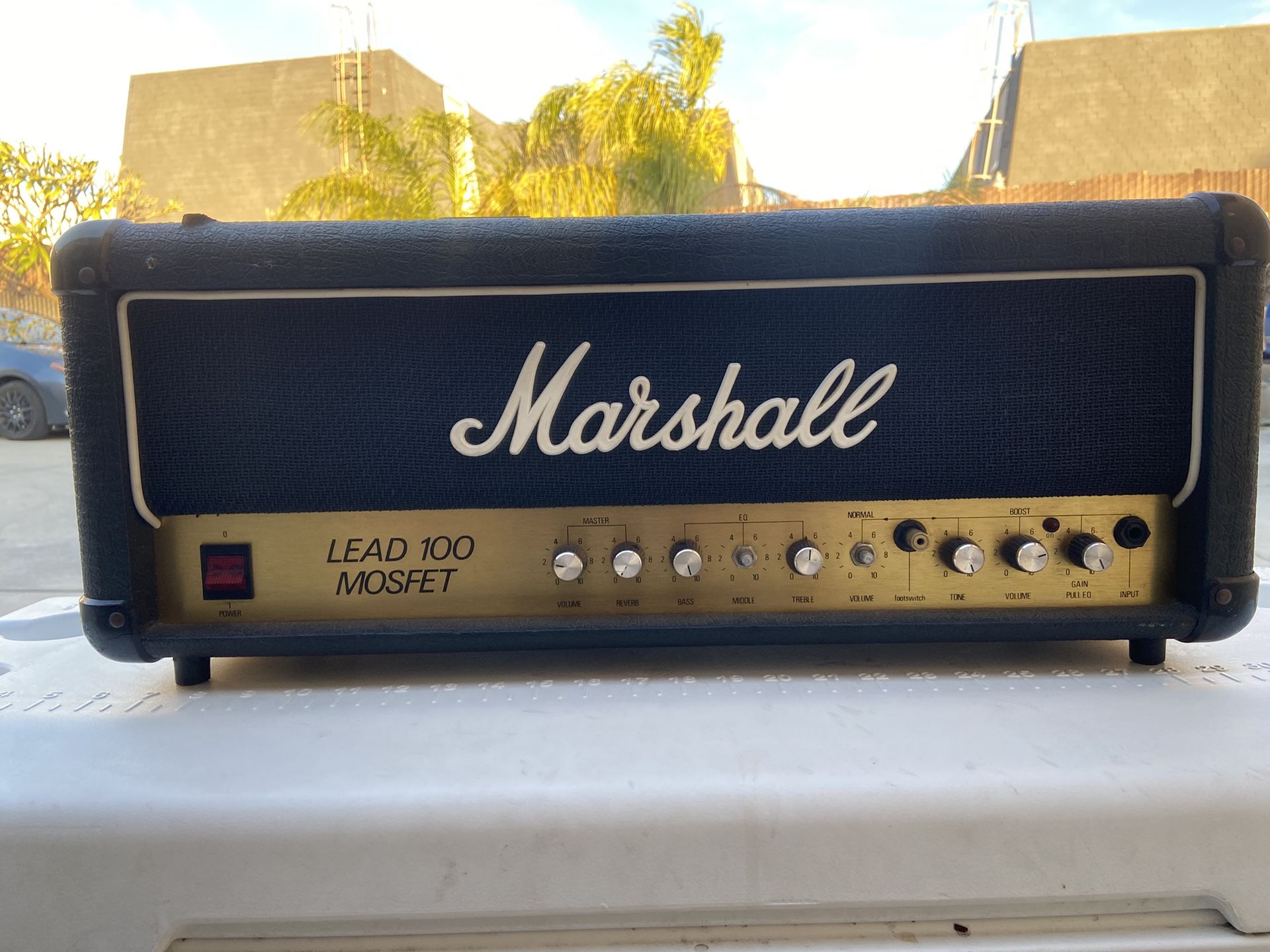 100 watt Marshall. Has that iconic Marshall tone. Built in the 80’s. Valve state non tube amp, has bite has punch very mean 80’s sound