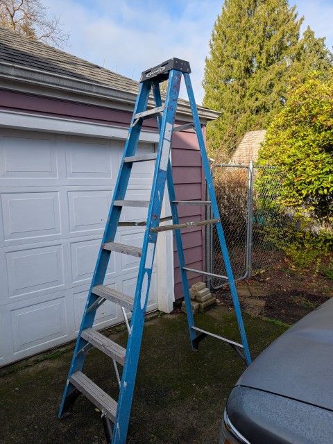 Fiberglass Werner 8ft Folding Ladder, $40 Has some paint spill on it but overall a solid ladder. Owned it for 5 years and only selling because I have upgraded. Located in North Portland near the New Seasons on 33rd.