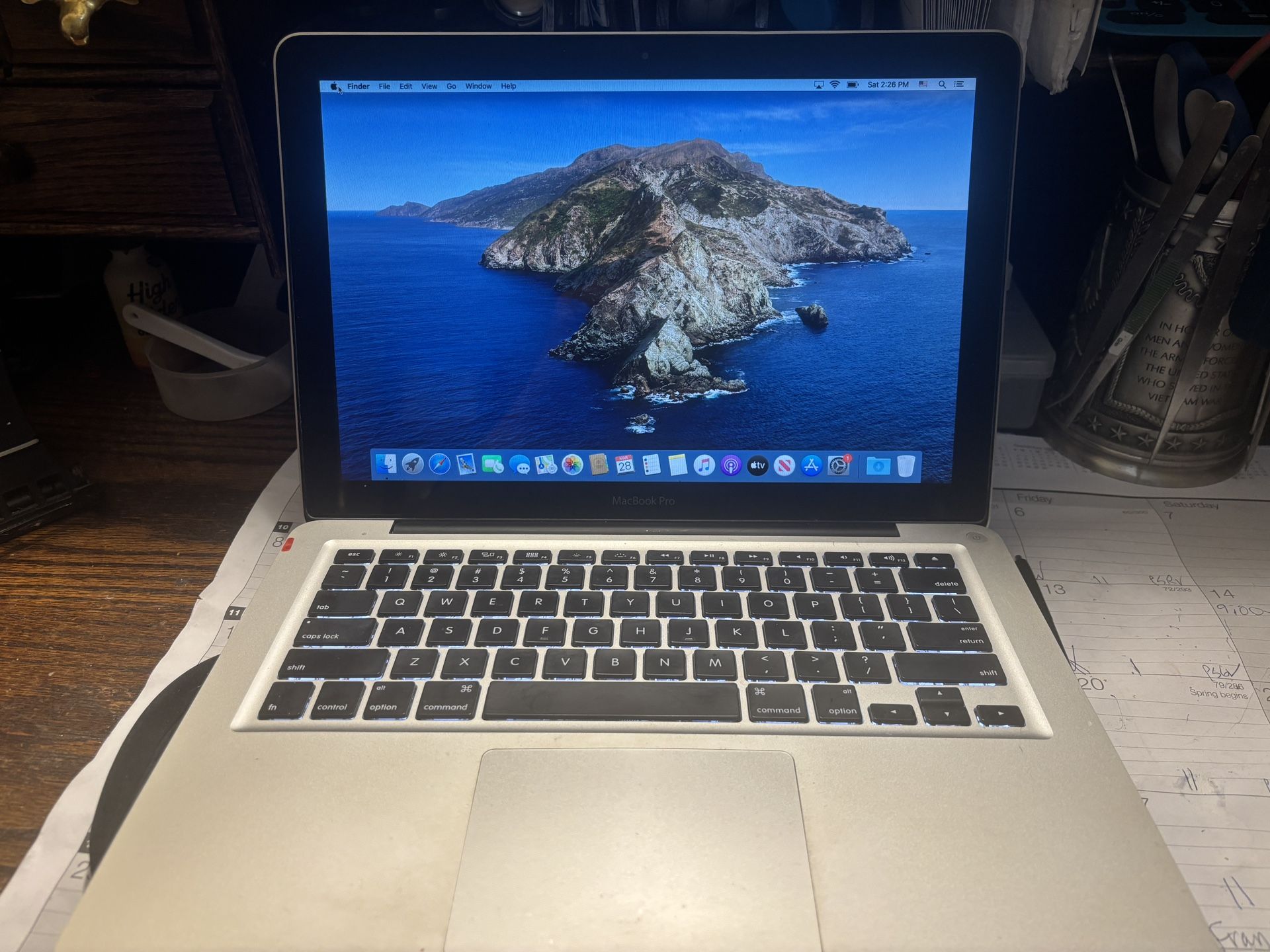Very nice ,clean & well treated MacBook Pro mid 2012 macOS Catalina 10.15.7 to factory settings. 13 inch 2.6 GHz dual core Memory 4 GB Come with power cord Carrying case