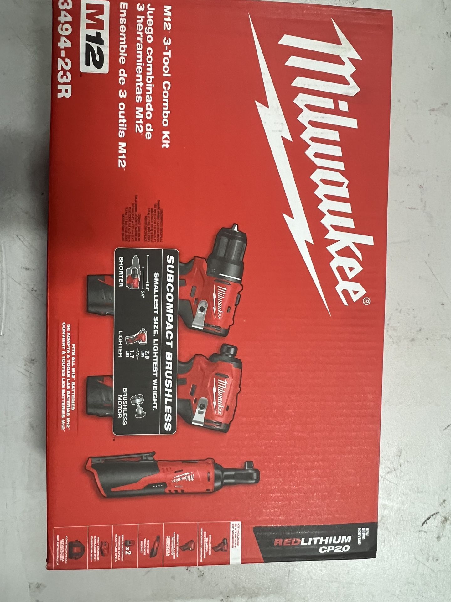 M12 12-Volt Lithium-Ion Brushless Cordless Subcompact Drill &Impact Driver Combo Kit with 3/8in Ratchet, Batteries & Bag