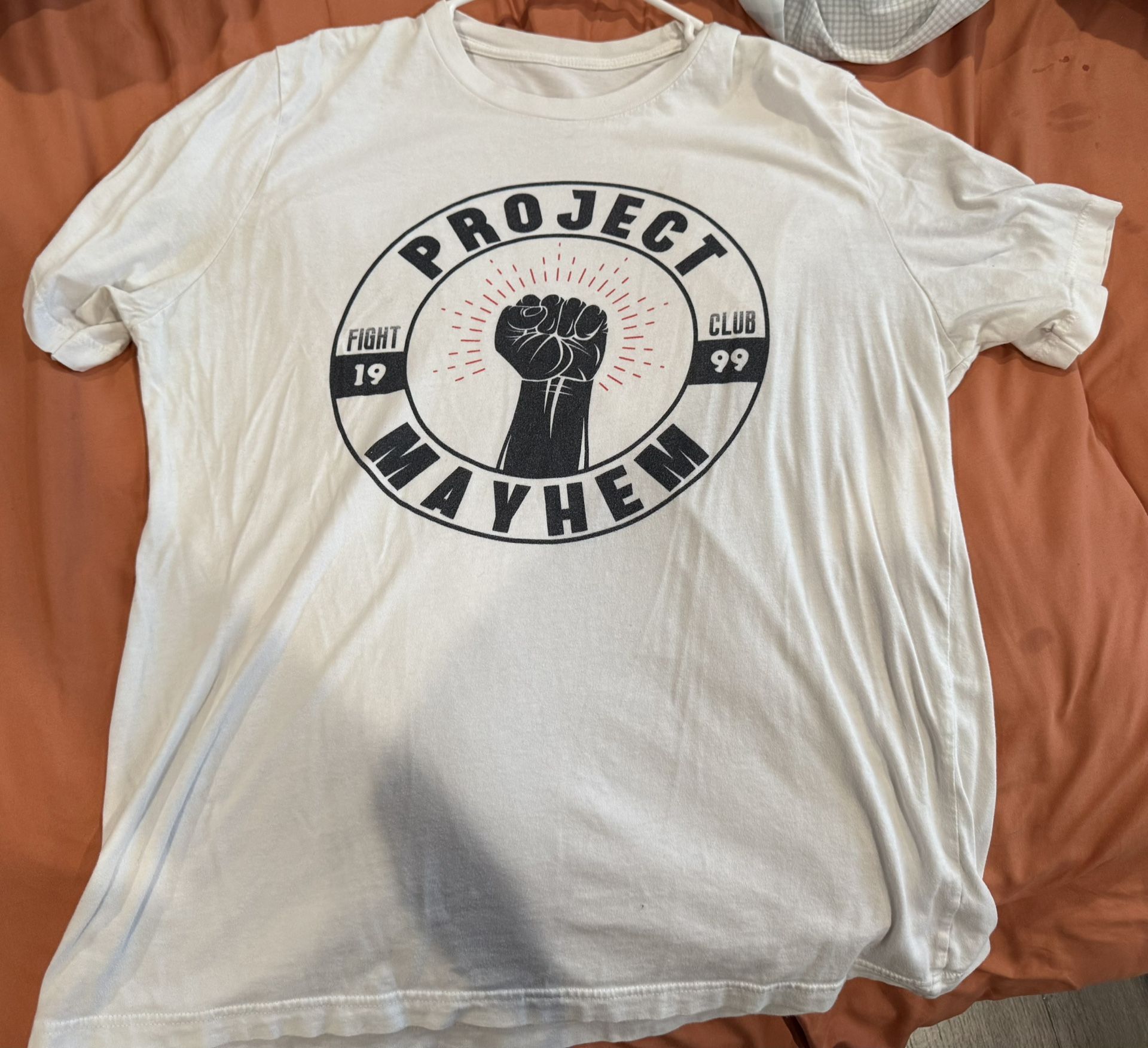 Fight Club Project Mayhem T Shirt Size Large Logo Movie White Tyler Derby