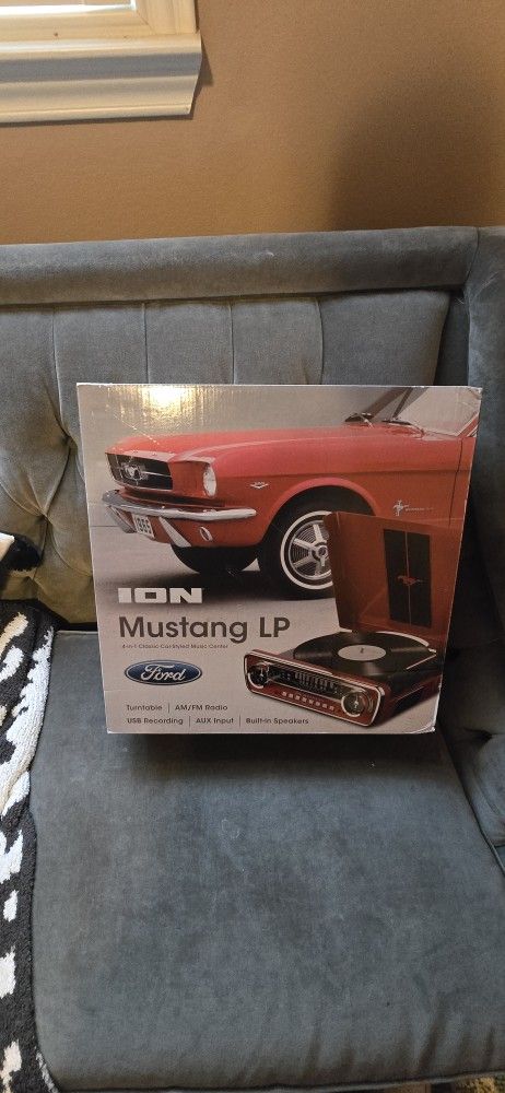 The ION Audio Mustang LP is a 4-in-1, belt-drive turntable styled after the dashboard of a 1965 Ford Mustang. It plays 33 1/3, 45, and 78 RPM records, features a built-in AM/FM radio, and can convert vinyl to digital via USB. It includes built-in speakers, an AUX input, and a headphone jack, with a design featuring a speedometer-styled tuner and gear shifter. Key Features and Details: Design: Inspired by the 1965 Ford Mustang, available in red or black, with a radio tuner that mimics a speedometer. Functionality: 3-speed belt-drive, FM/AM radio, USB recording (via included software), and AUX input for other devices. Audio: Built-in speakers, headphone jack for private listening, and RCA outputs for connecting to external speakers. Stylus: Uses a ceramic cartridge with a conical diamond-tipped stylus. Common Use Cases: Often marketed for car enthusiasts and retro, casual listening.