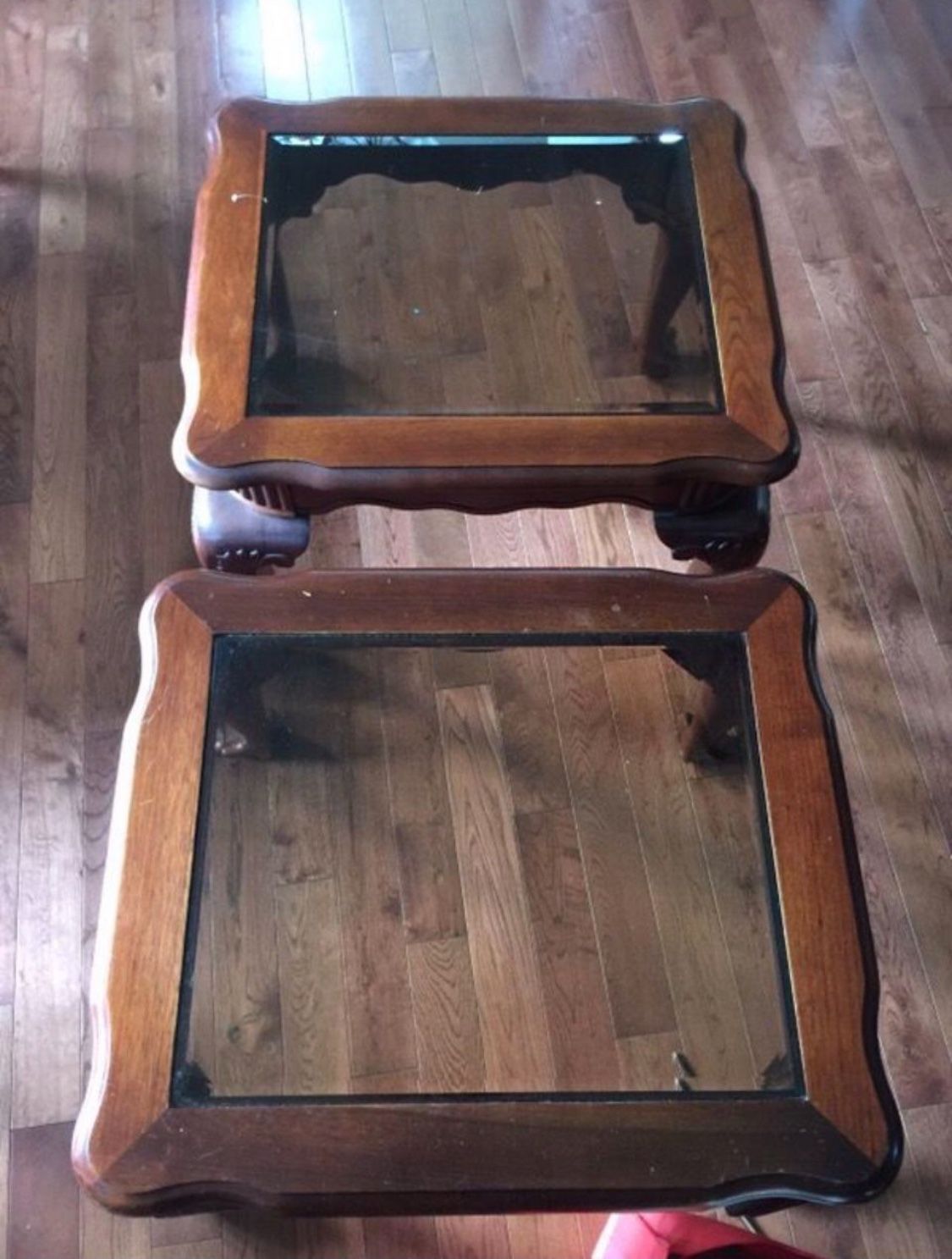 Used Maple Claw Foot glass top End tables Some scratches, can probably be buffed and polished out.