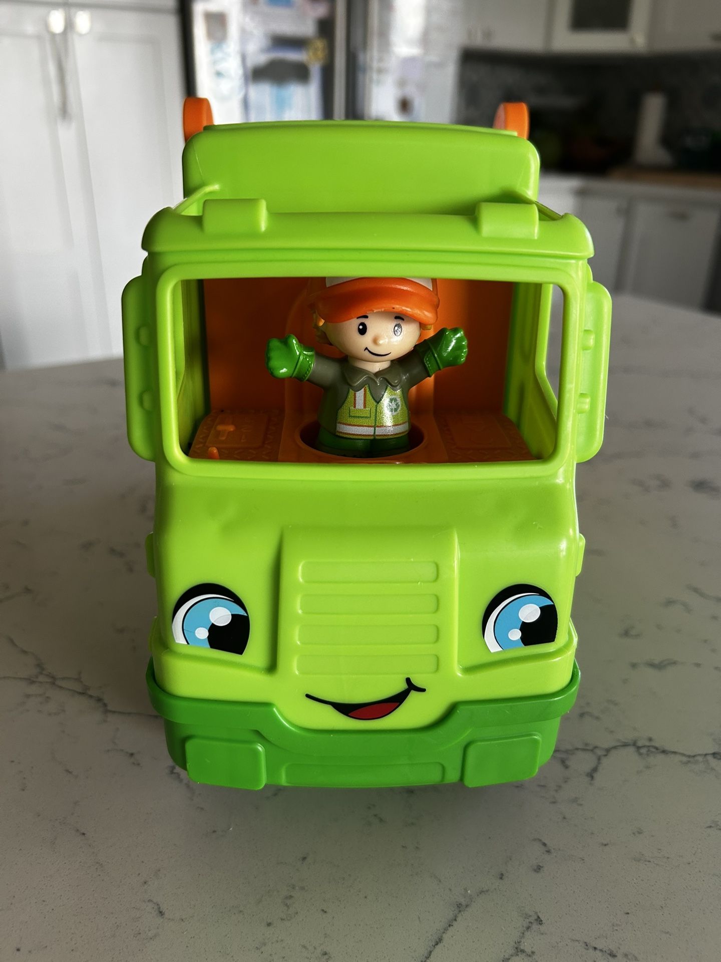Fisherw-Price Little People Toddler Toy Recycling Truck Musical Garbage Vehicle with Figure for Preschool Pretend Play Ages 1+ Years
