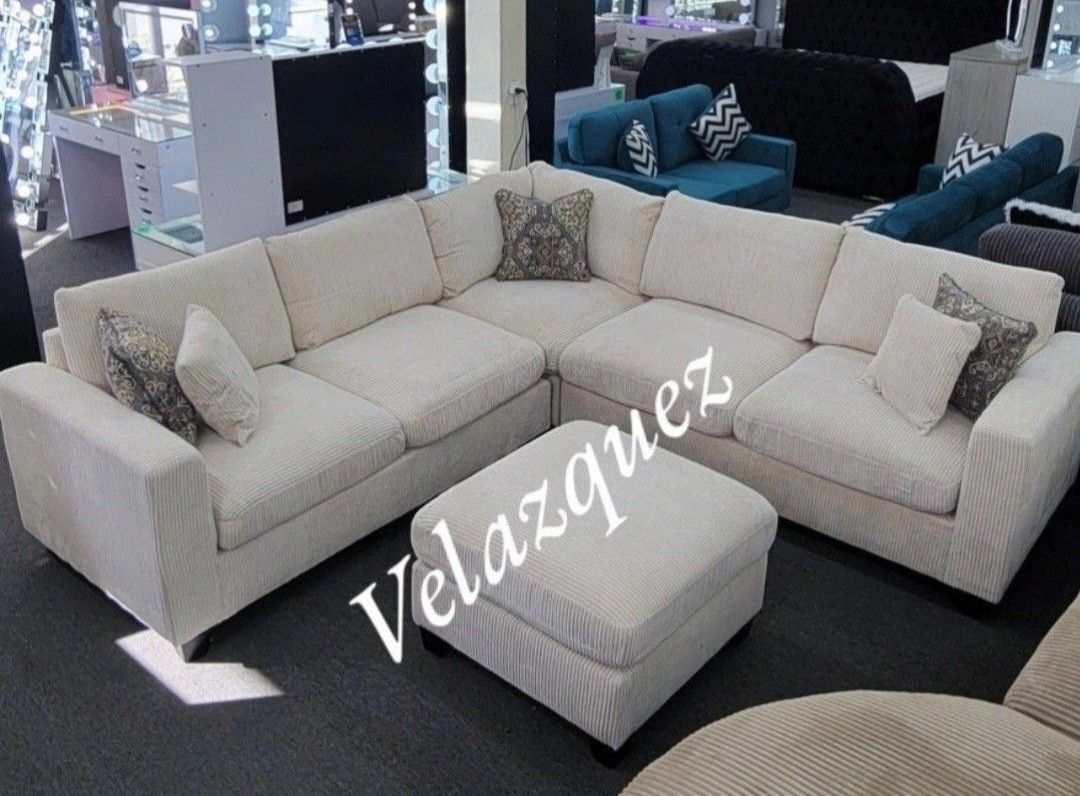 ✅️✅️ 4pc for grey corduroy fabric upholstered sectional sofa with ottoman ✅️✅️