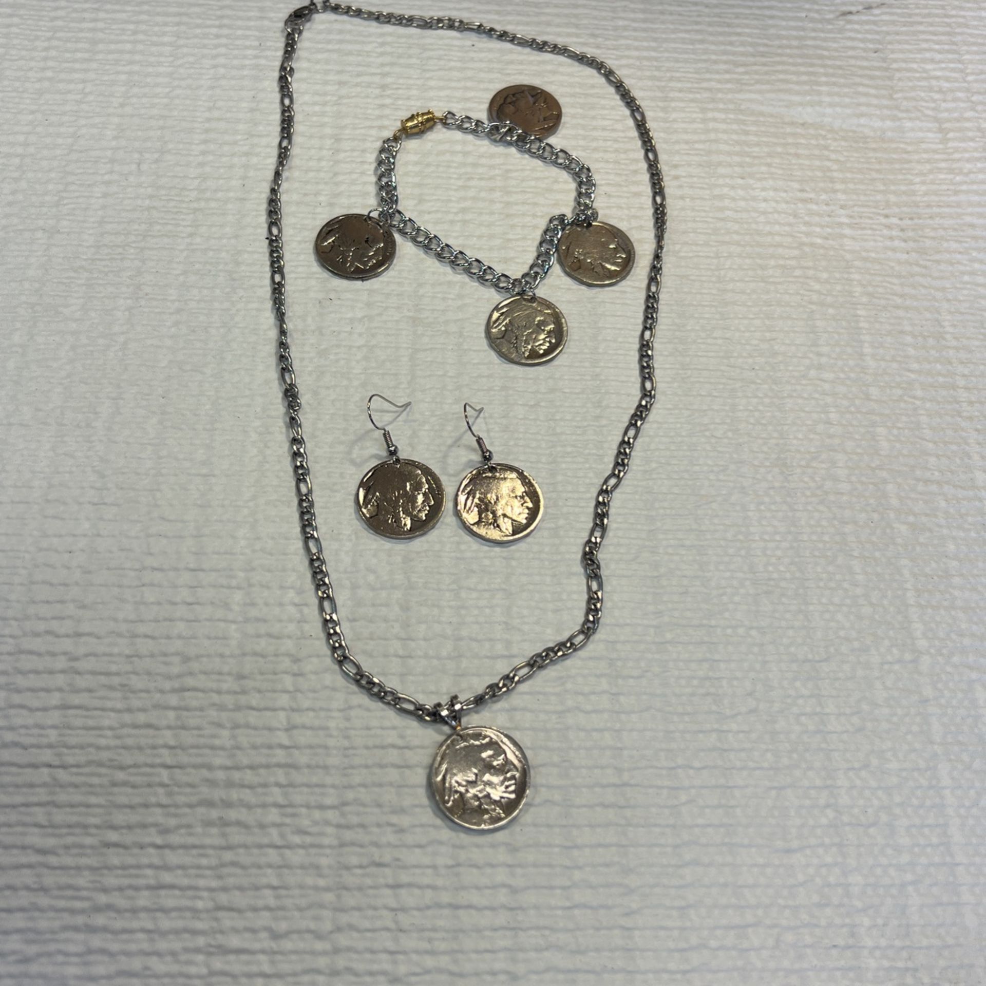 Buffalo nickels, necklace, bracelet, and earrings set $20