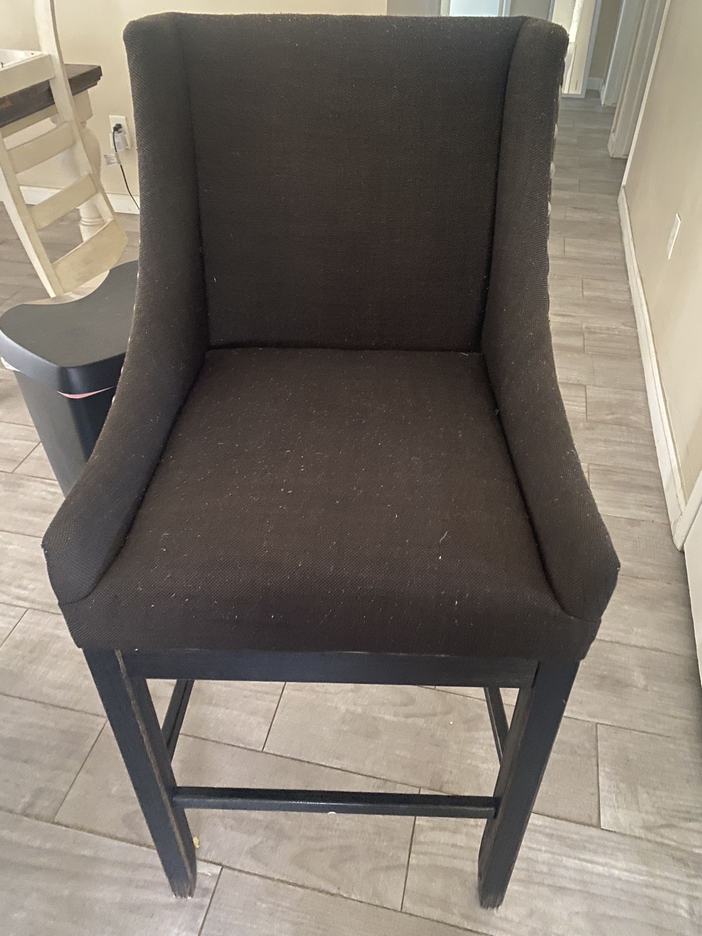 dark gray upholstered bar chairs set of 3 , only one in photo good condition