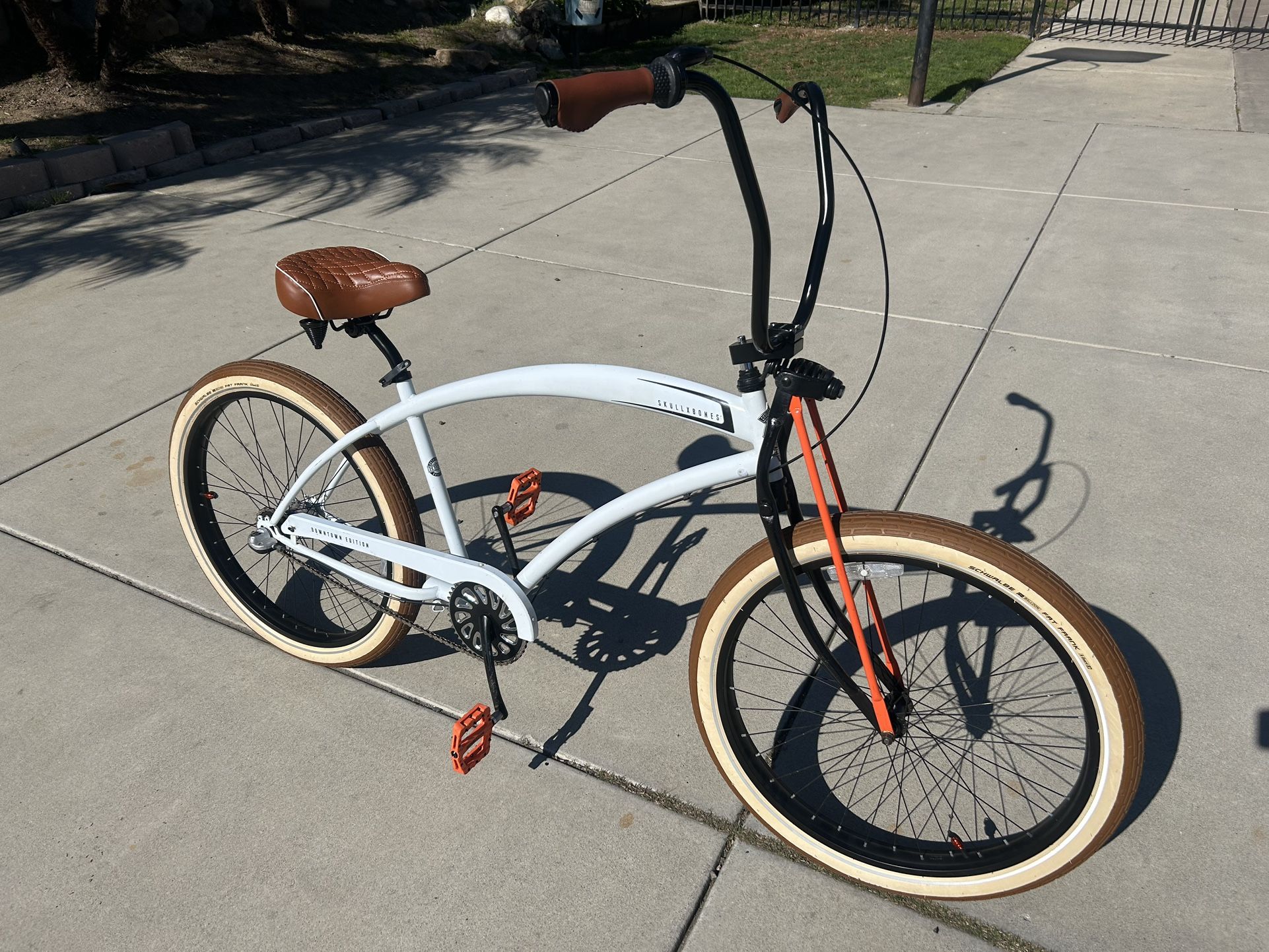 3 speed beach cruiser New condition. Very clean. No rust. Downtown edition includes the following Brand new fat, Eddie, tires and new inner tubes New plus seat New pedals New handlebar grip New 14 inch ape hangers New extend extended seat pole New chain New black ops handlebar vice Downtown edition includes Springer Forks Nexus three speed Extra wide, 26 inch wheels Very clean bike. Rides even better than it looks.