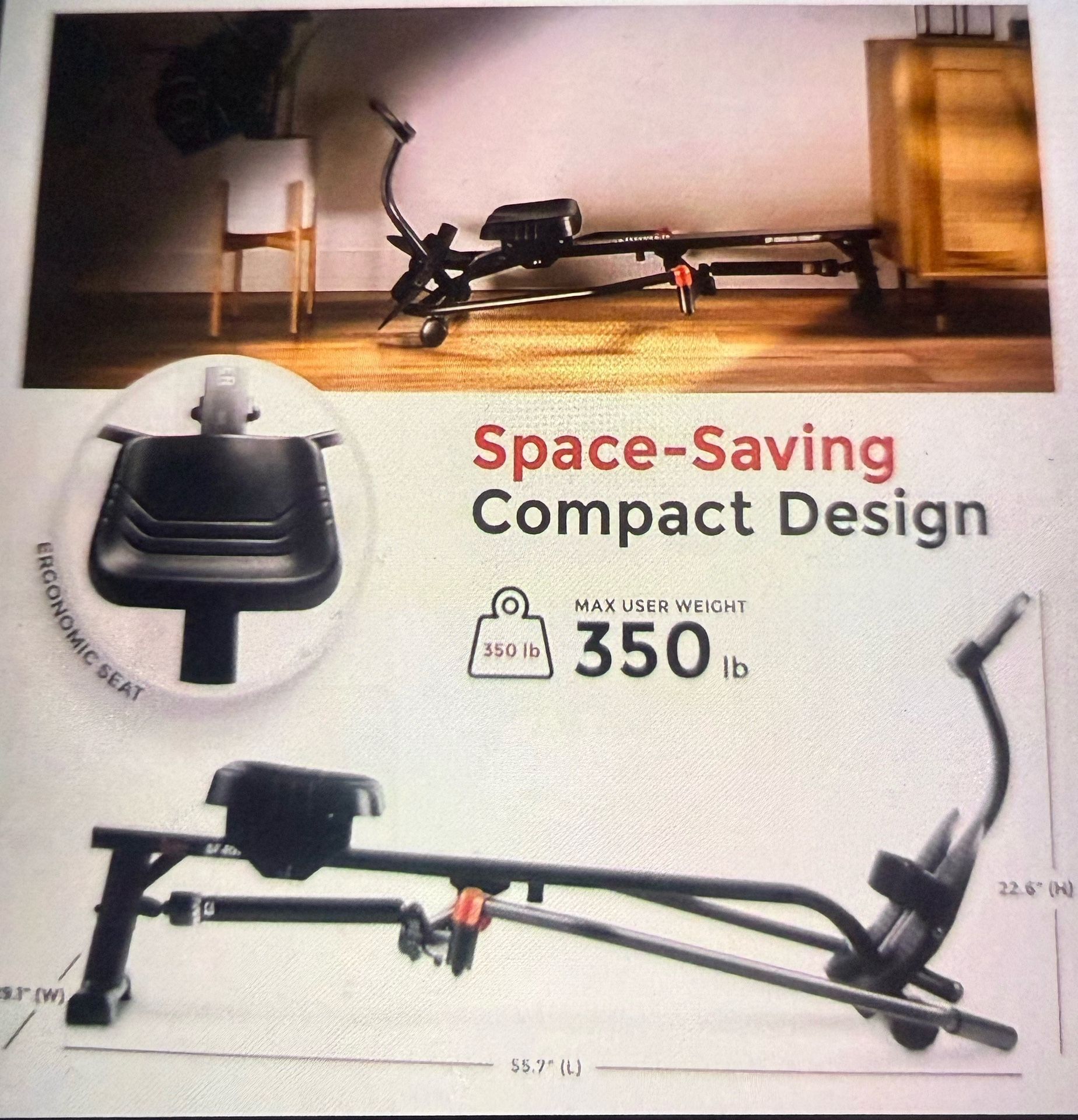 Sunny Health & Fitness smart compact full motion rowing machine. App for different moves