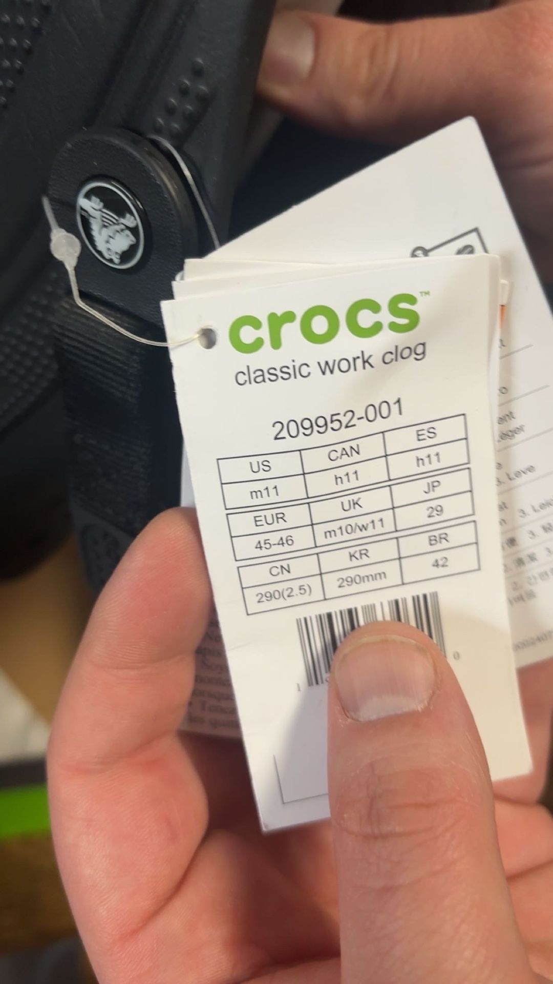 Men’s work Crocs size 11. Never worn and had Dr . Scholl’s memory foam included
