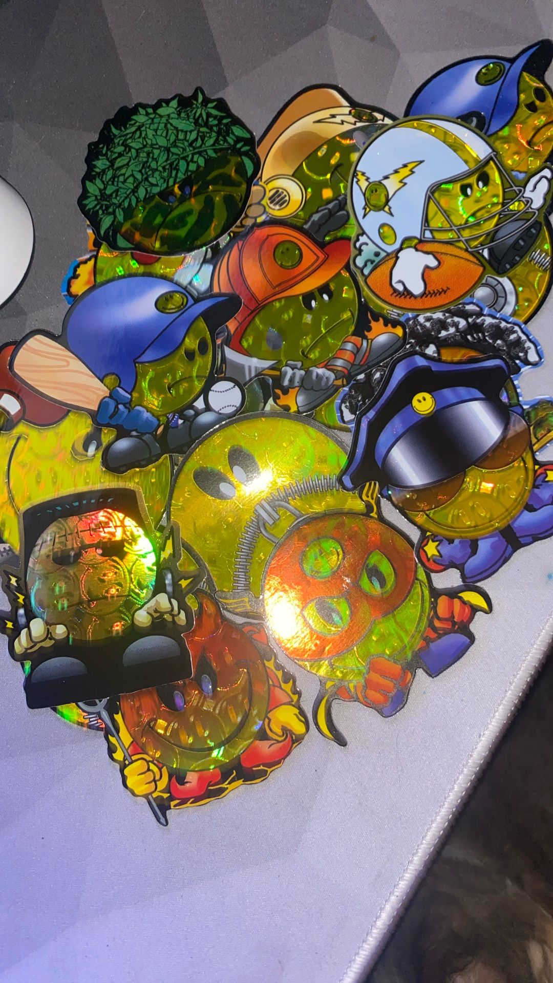 These are old school smiley face stickers. They used to be in the vending machine back in 2002 there’s 18 total stickers take them all for $5