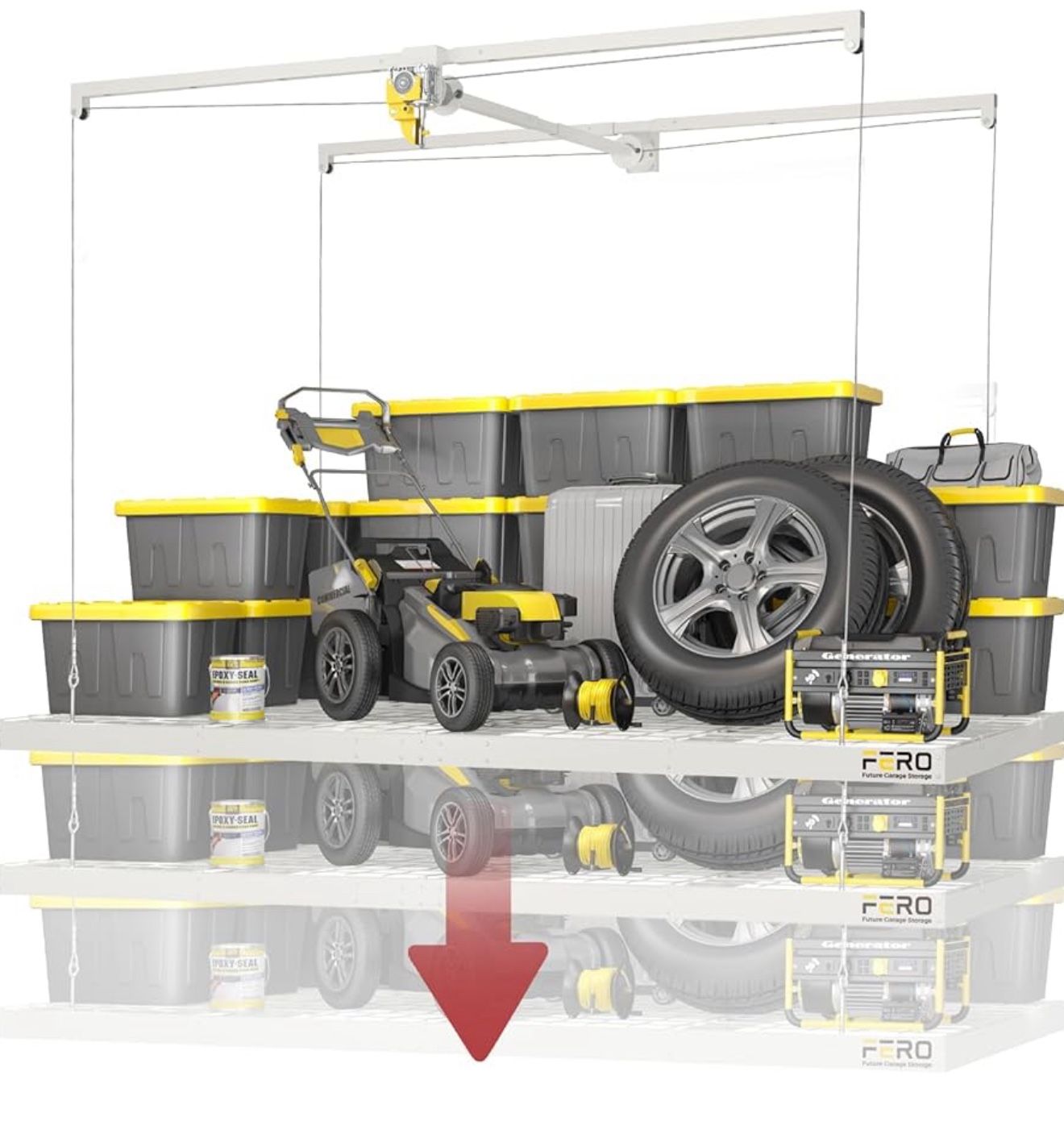 Pick up only New in box Garage Ceiling Storage Racks – 4x8 FT Overhead Garage Storage Rack with Safety Lock, Heavy-Duty Ceiling Mounted Lift System and Storage Organizer, Ideal for Maximizing Overhead Space, 325 lbs Capacity