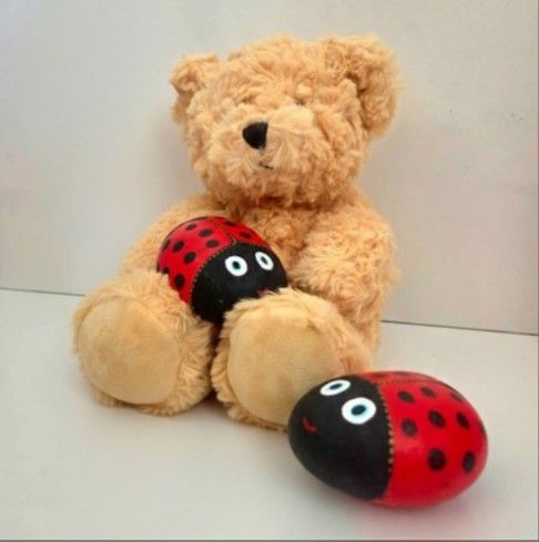 1 Teddy bear 2 stone ladey bugs