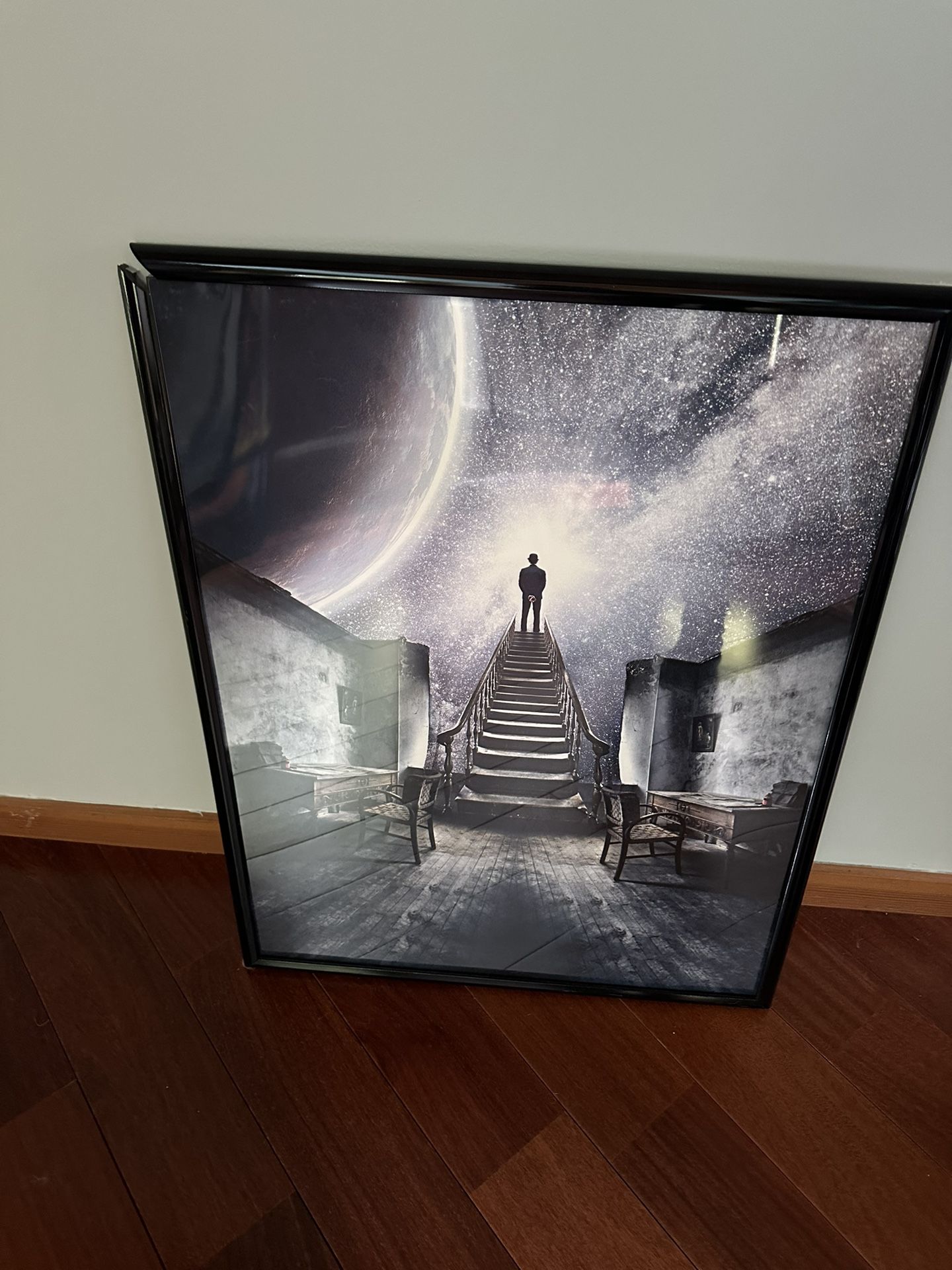 Neat space print. 29x30. In a cheap plastic frame right now.