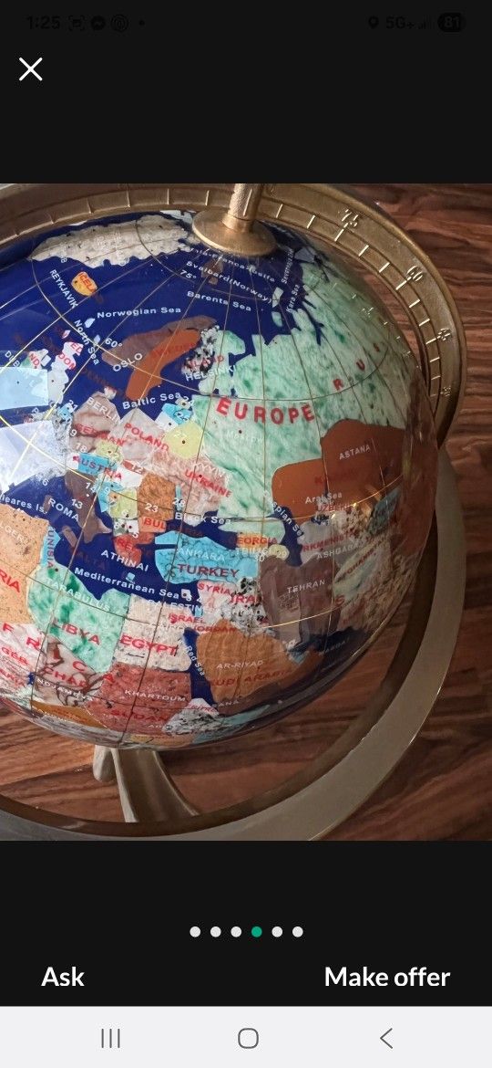 Vintage Globe Blue Lapis Gemstone Silver Tripod Stand