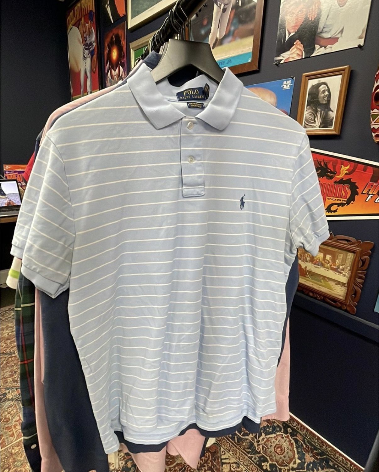 (L)22x25.5 Light Blue Striped Polo Shirt