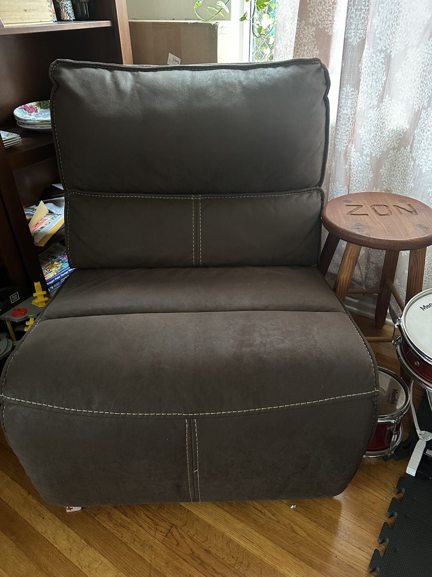NOW ON THE CURB ACROSS FROM HAMILTON HIGH ON CATTARAUGUS (cross street ROBERTSON) We got handed down a ridiculously comfortable sectional couch, however, it is too big for our living room. We had to remove this section. It feels wasteful to put it on the curb because it is in great condition. However, we just can’t make it work in our home. Up for grabs! If there isn’t any interest, then we are putting it on the curb tomorrow. It does not recline. Dark brown fabric that mimics suede. Very soft.