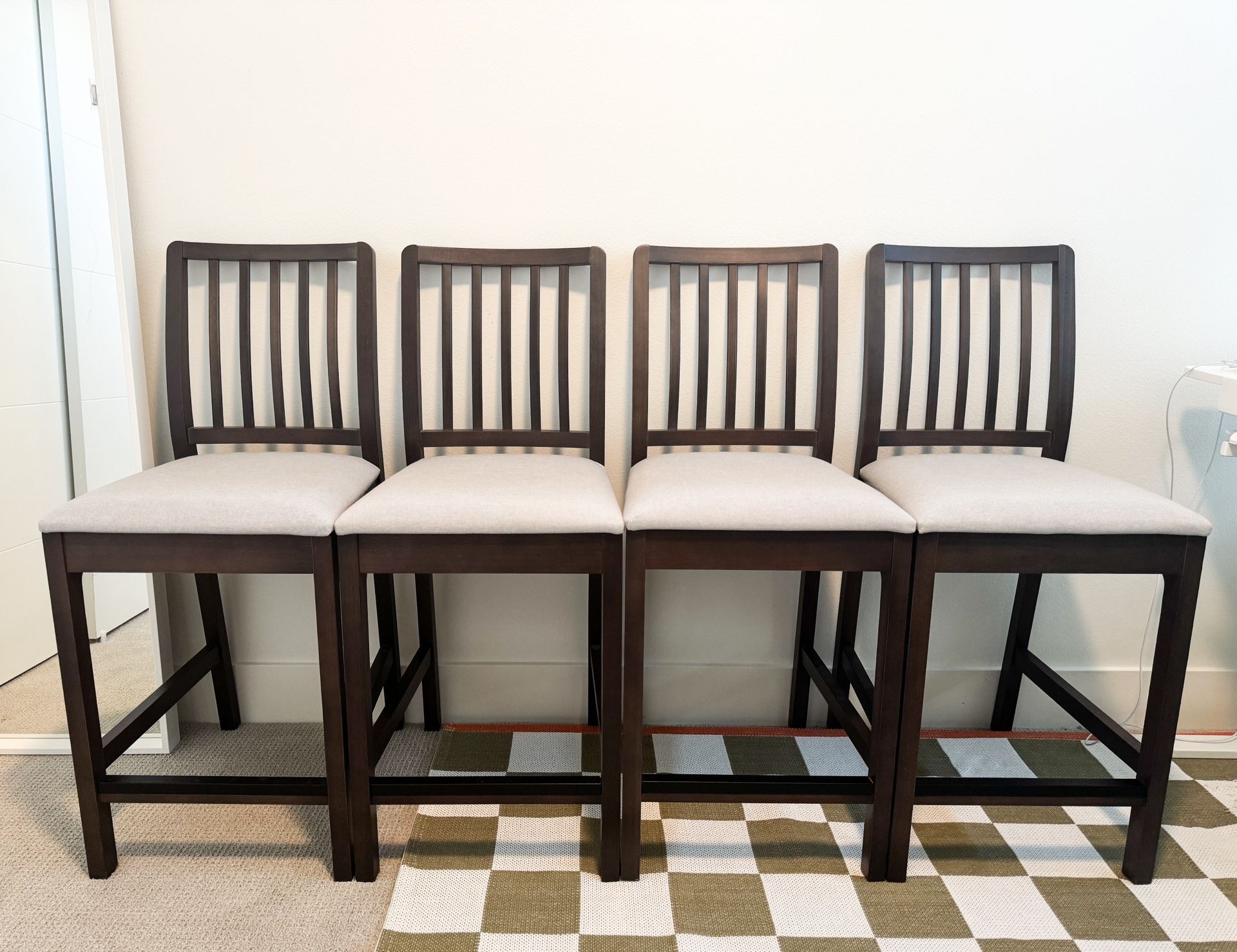 LIKE NEW condition. Selling as they don’t fit the space. Purchased new at $105 + tax each. $299 for all 4 EKEDALEN Bar stool with backrest, dark brown/Orrsta light gray, 24 3/8 " https://offerup.co/faYXKzQFnY?$deeplink_path=/redirect/