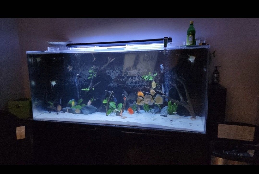 Fish tank Saltwater Freshwater 250 gallons 2 x6 filters Lights Crashed corral Air pump Decoration Net