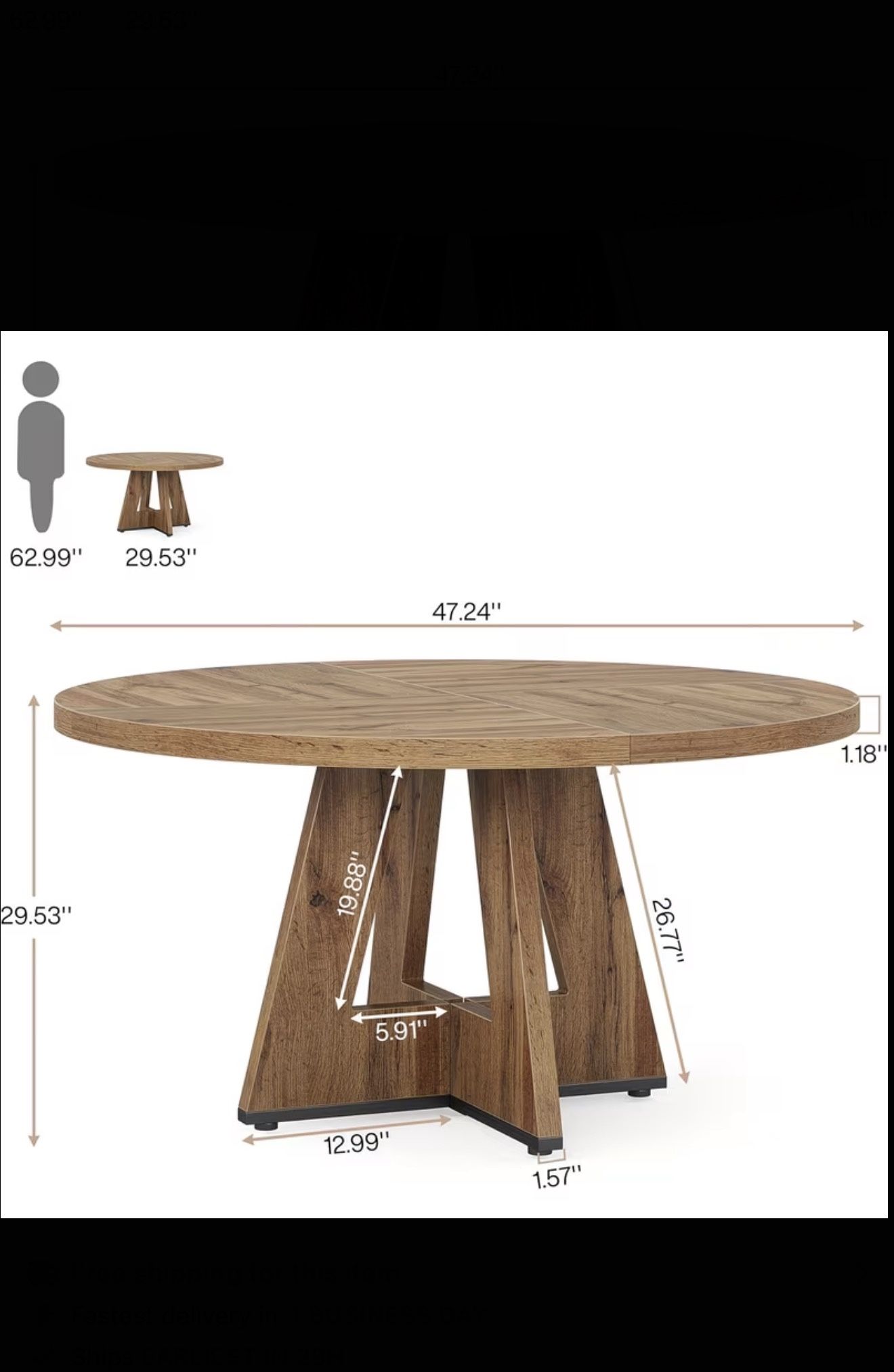 47" Round Walnut Wood Dining Table with Pedestal Base for 4-6 People Brand new in box