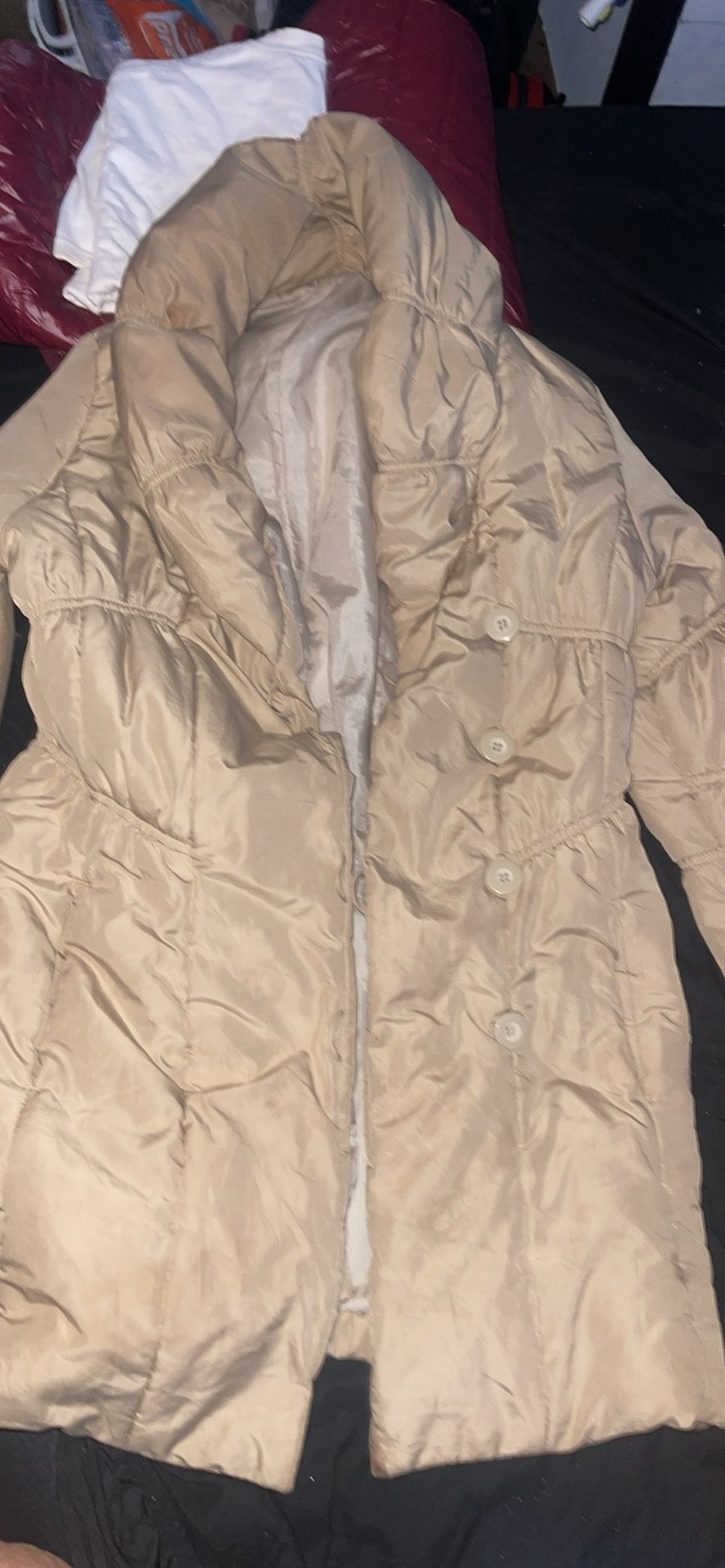 Stylish Long Beige/Tan Bubble Coat Size M Warm & Cozy Make best offer, can pick up asap