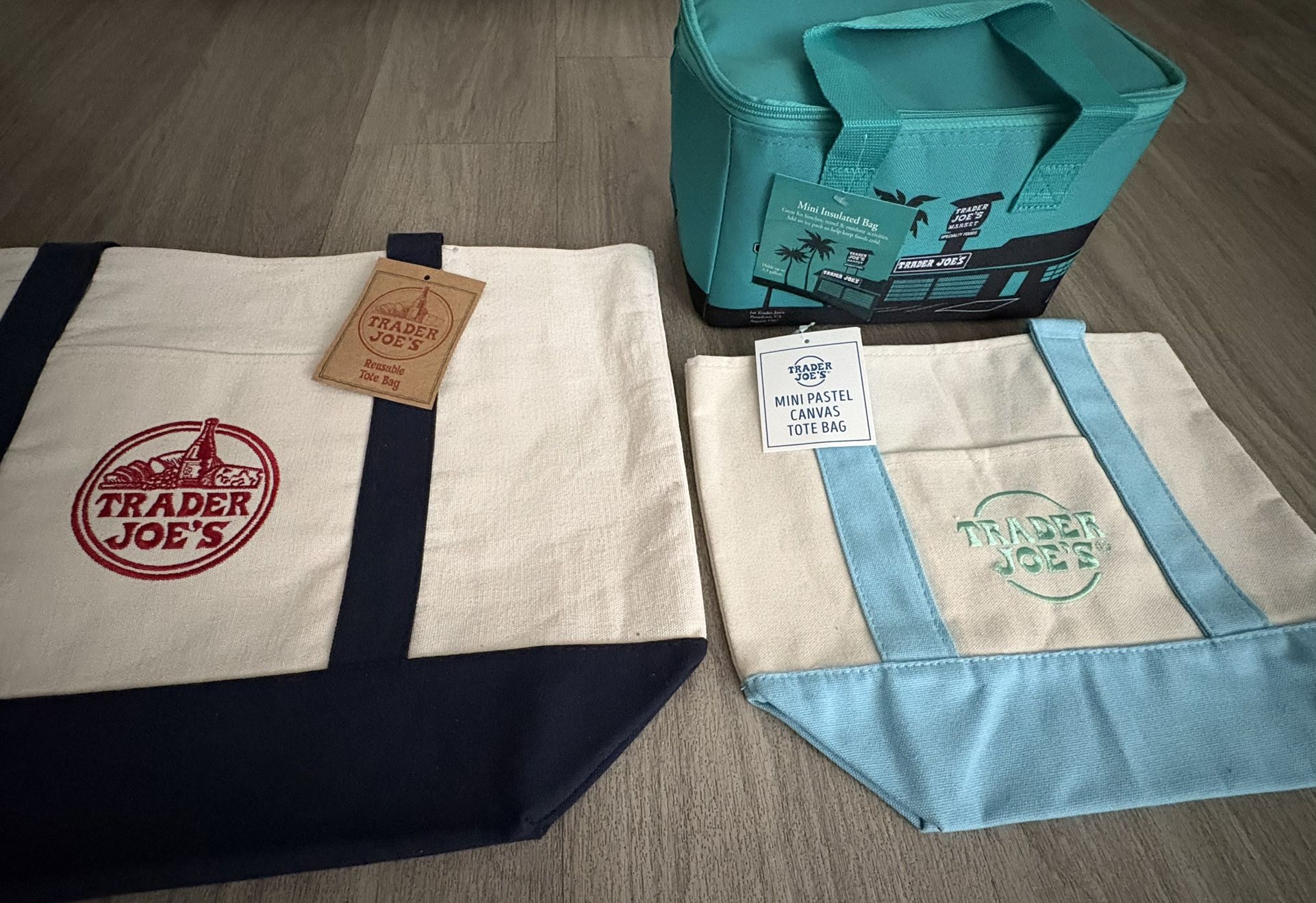 Trader Joe’s Mini Insulated Lunchbox, Mini and Large Canvas Bags- $30 (Plantation)