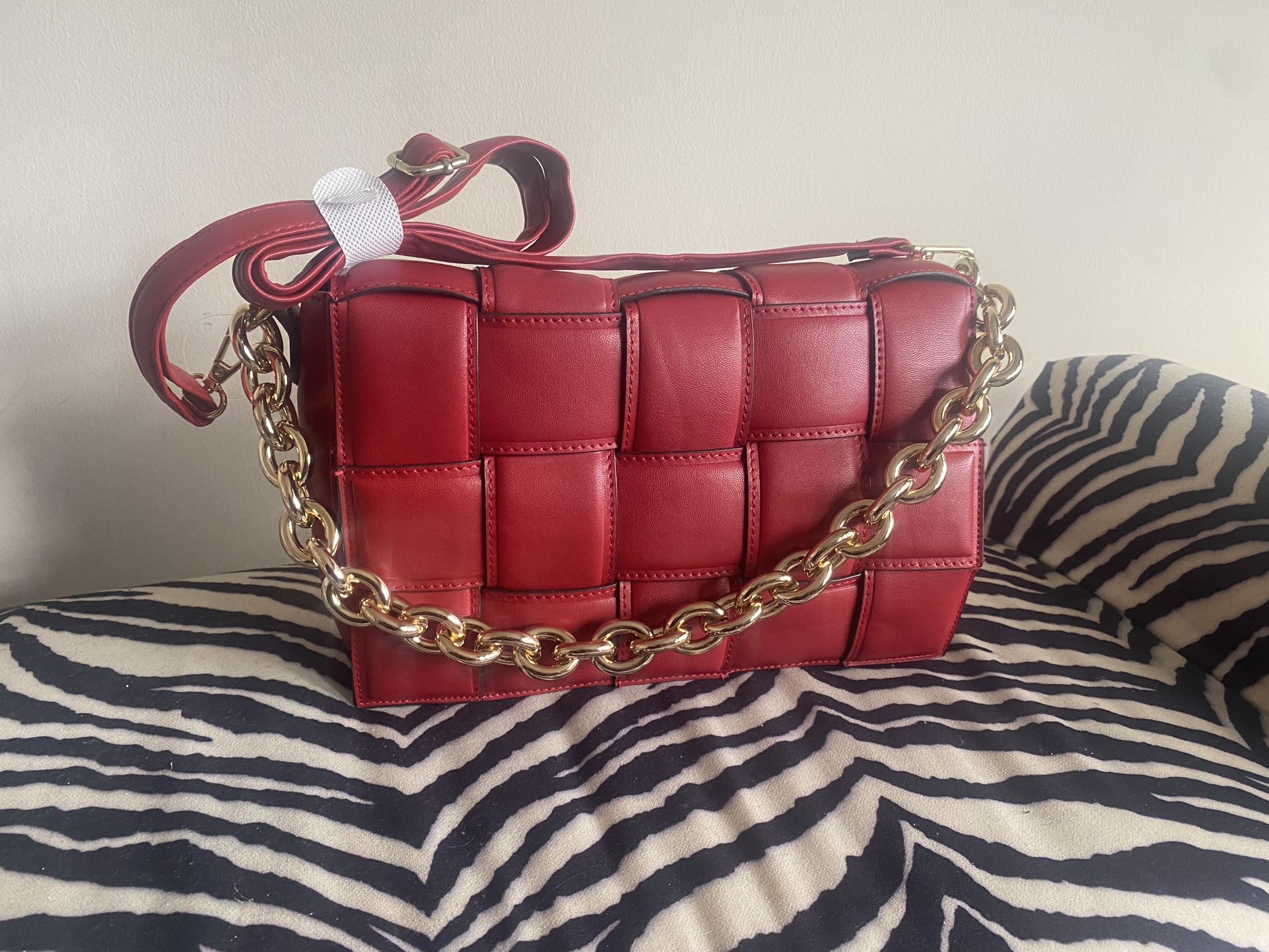 ****Brand New ********* Gold Chain Faux Leather Cross Body Woven Purse… ****** 12” W x 8” L