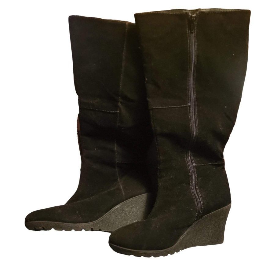 suede like material worn once black wedge boots size 8