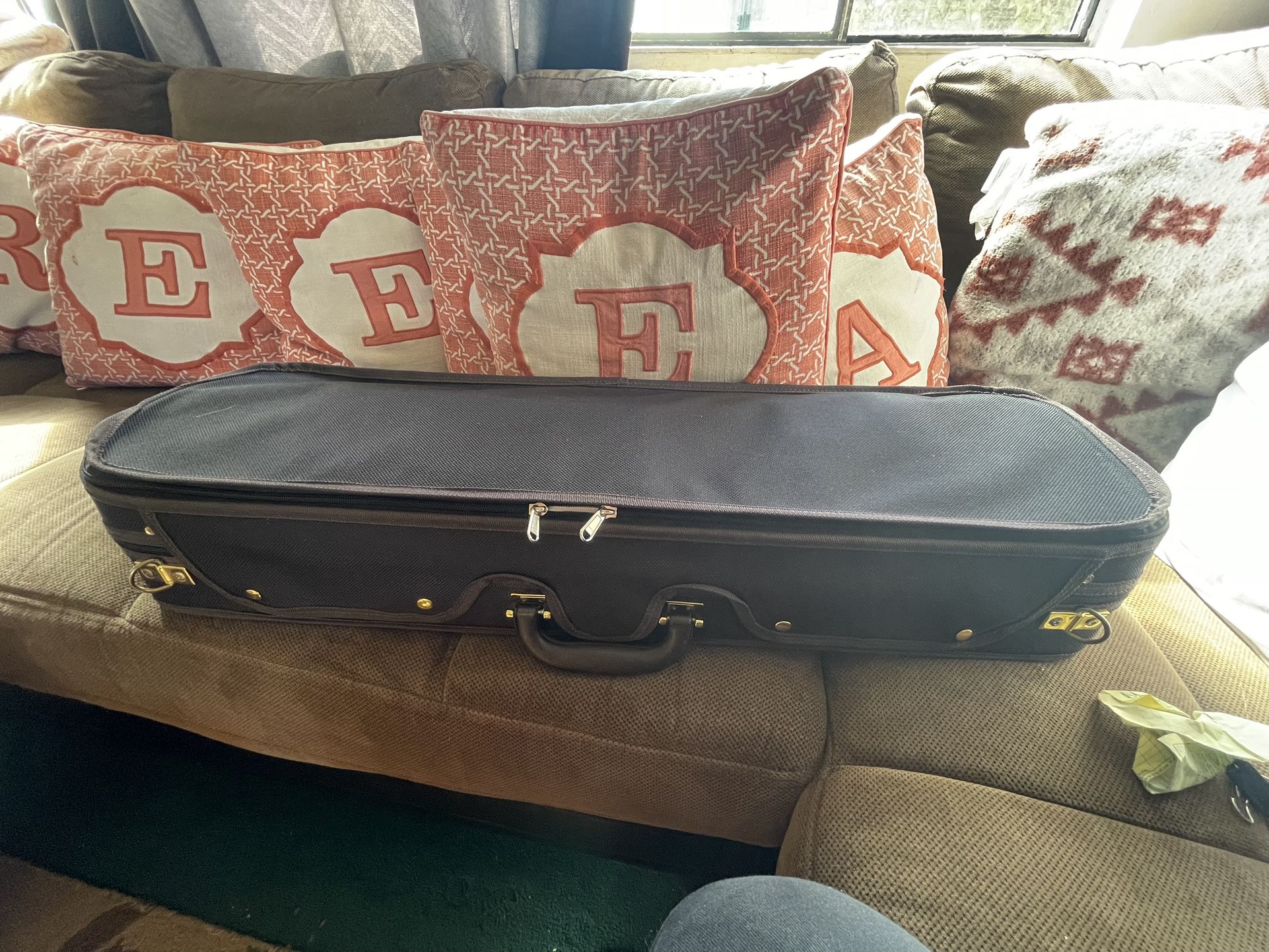 Selling my oblong 4/4 violin case. 4 bow hold snaps and I compartment for shoulder rest and pencil.