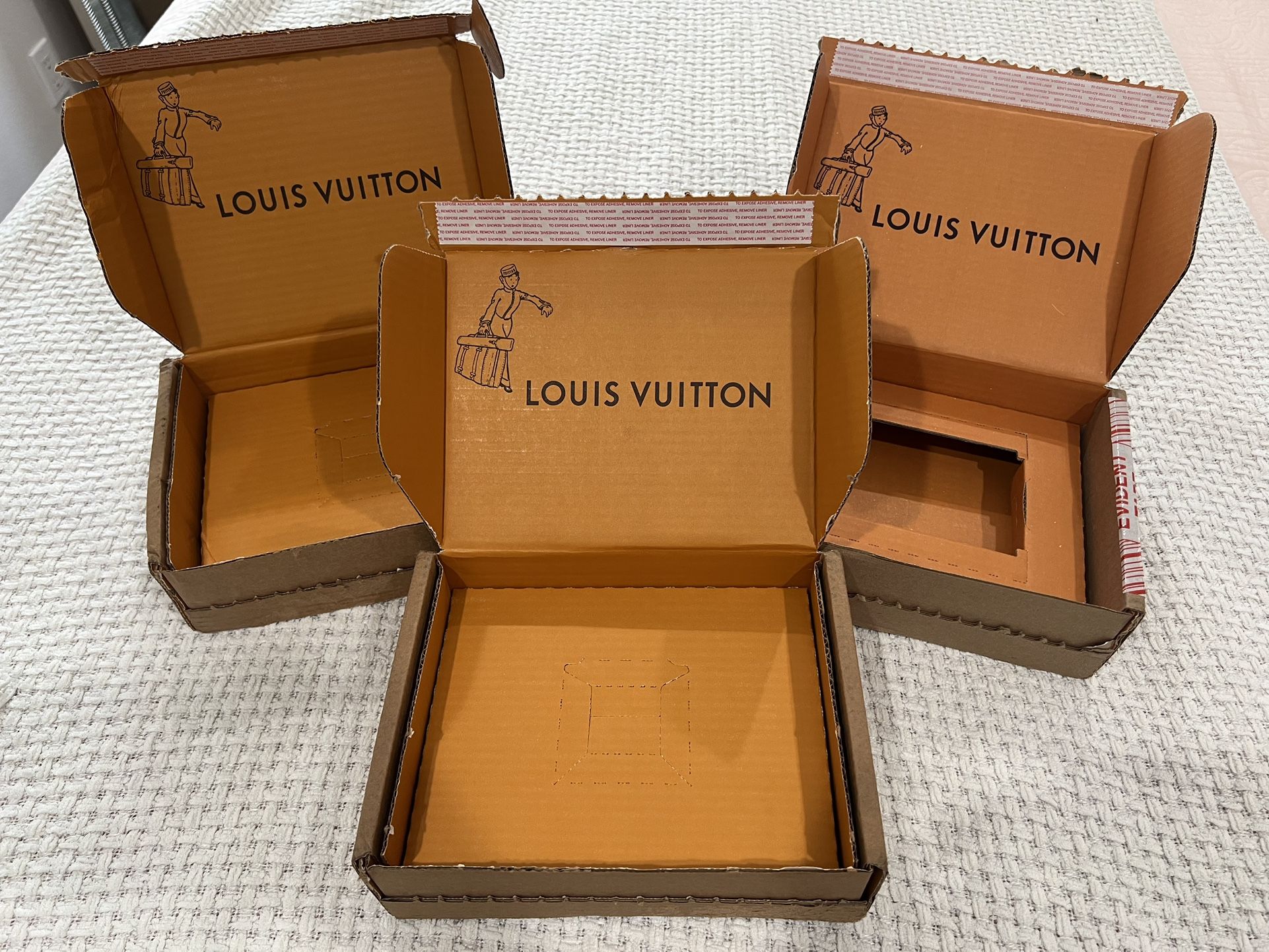 Louis Vuitton shipping boxes bundle of 3 Original Came with wallet purchases Great condition Still sealable 10 x 7.5 x 3 inches Ship boxes only! Feel free to send me an offer