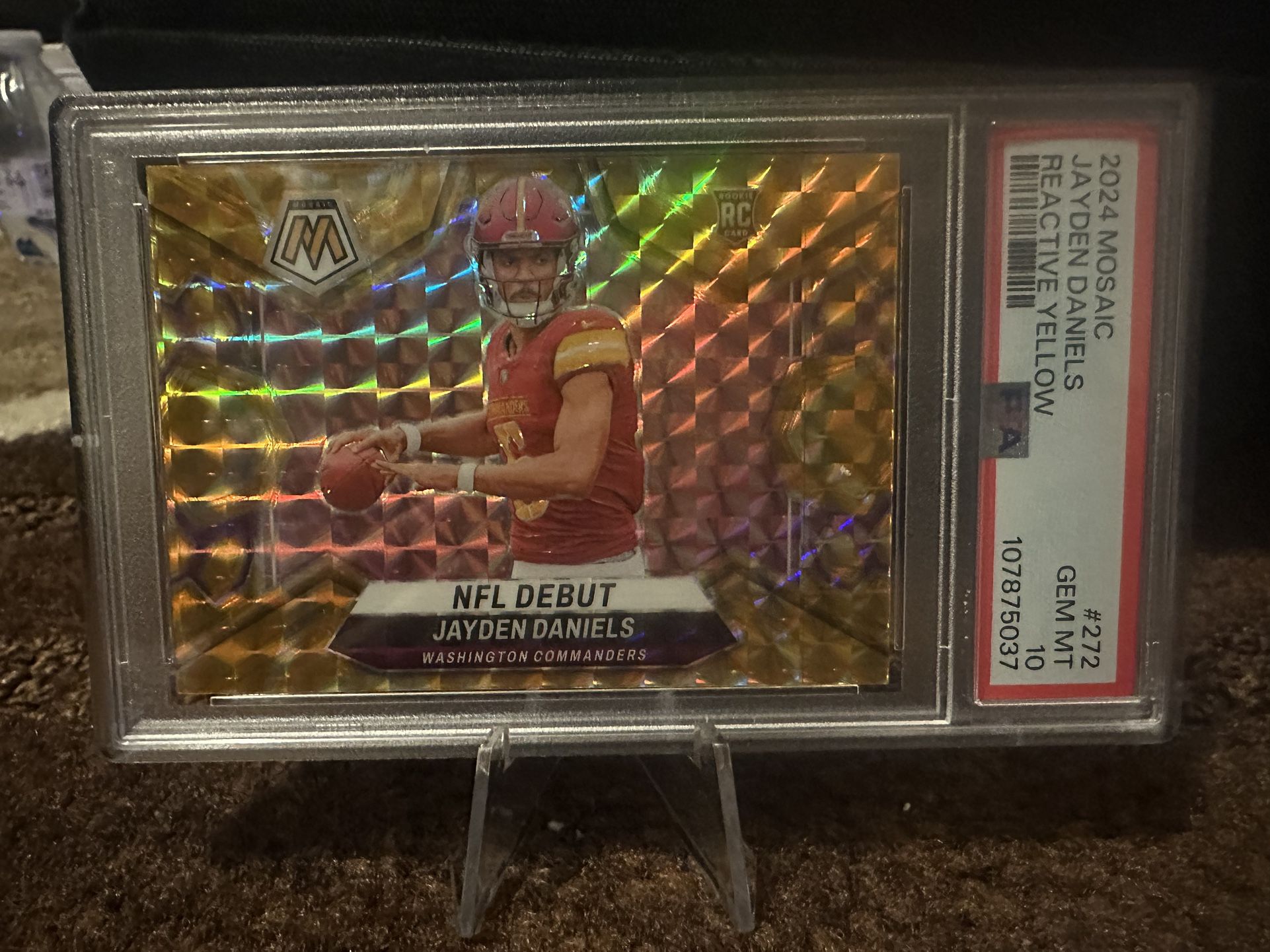 NFL Rookie Card Jayden Daniels Mosaic Yellow Refractor PSA 10