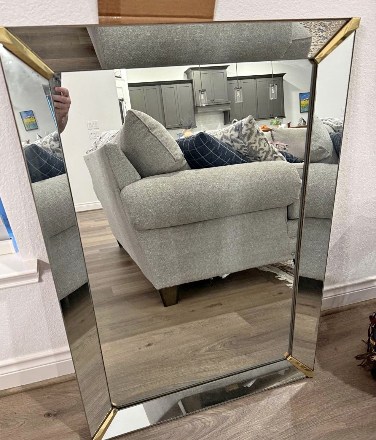 Large mirror, for dresser or whatever you may desire to use it for! Approx 35 pounds, 24”x40”