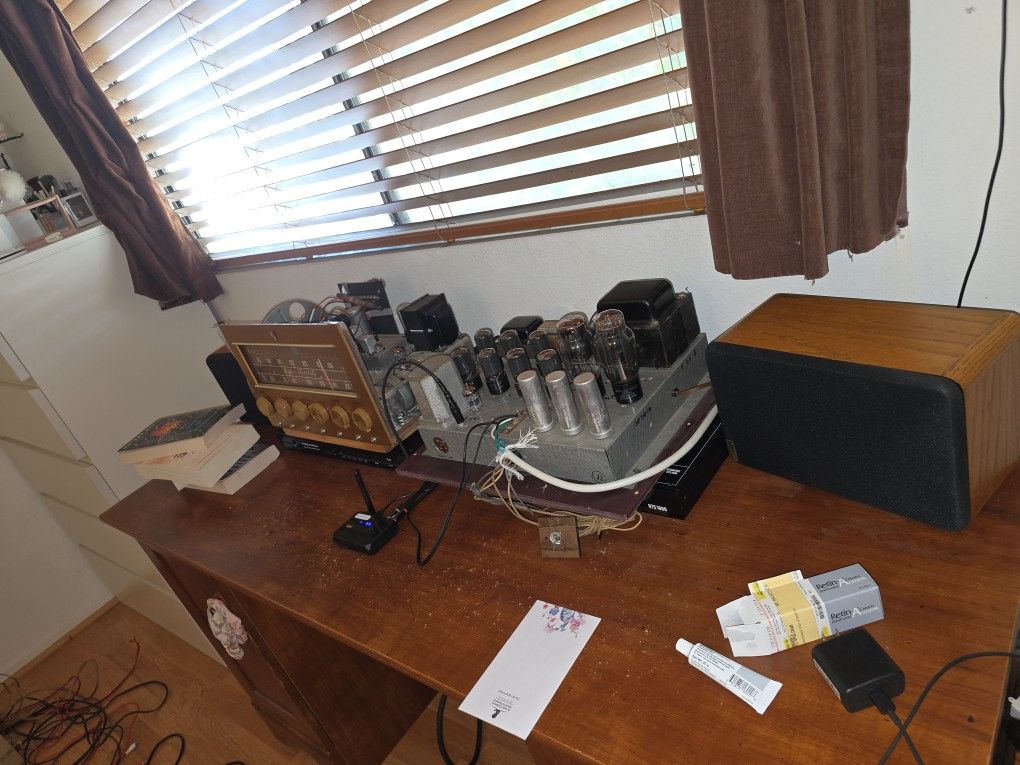 working.i had it hooked up playing now with 2 speakers.sound pretty sweet.has two coke bottle 5u4 usa and all magnavox 6v6.