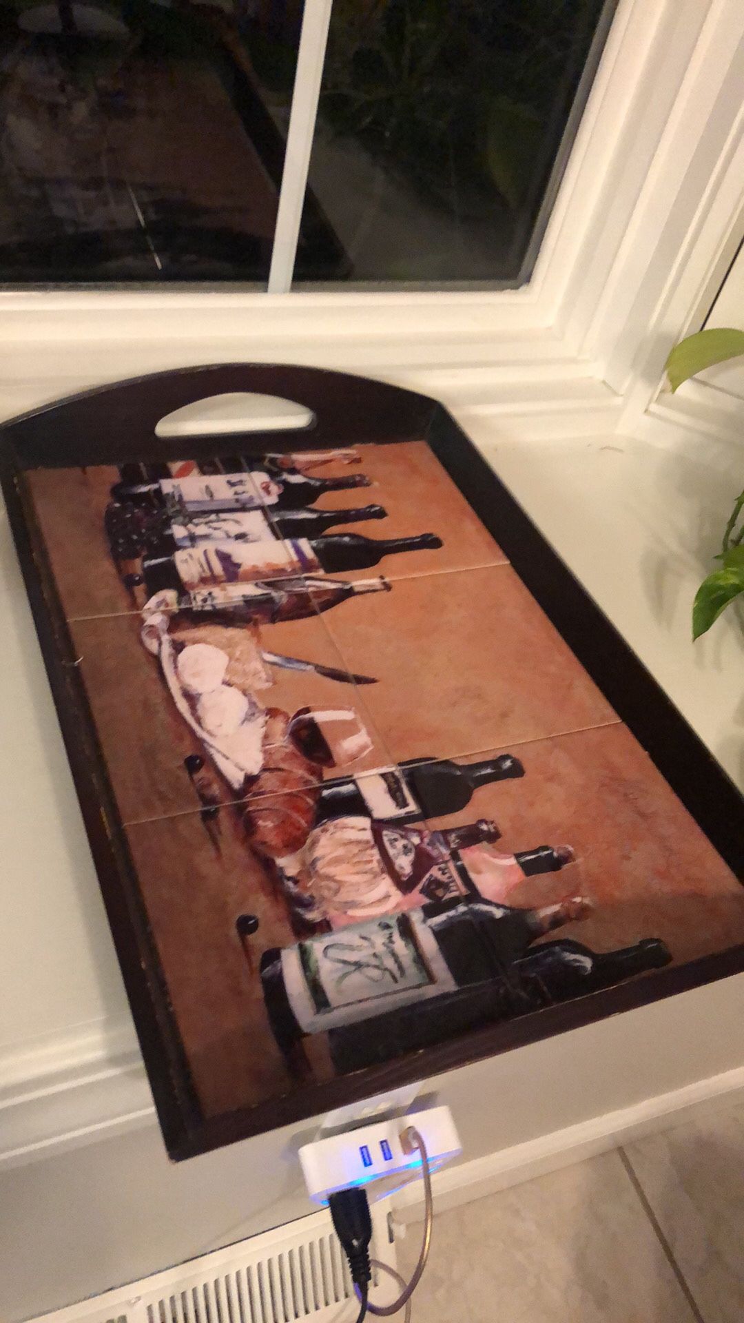 Lovely wood and tile table tray. Serve your favorite cheese wine and bread! Or just use as a decoration